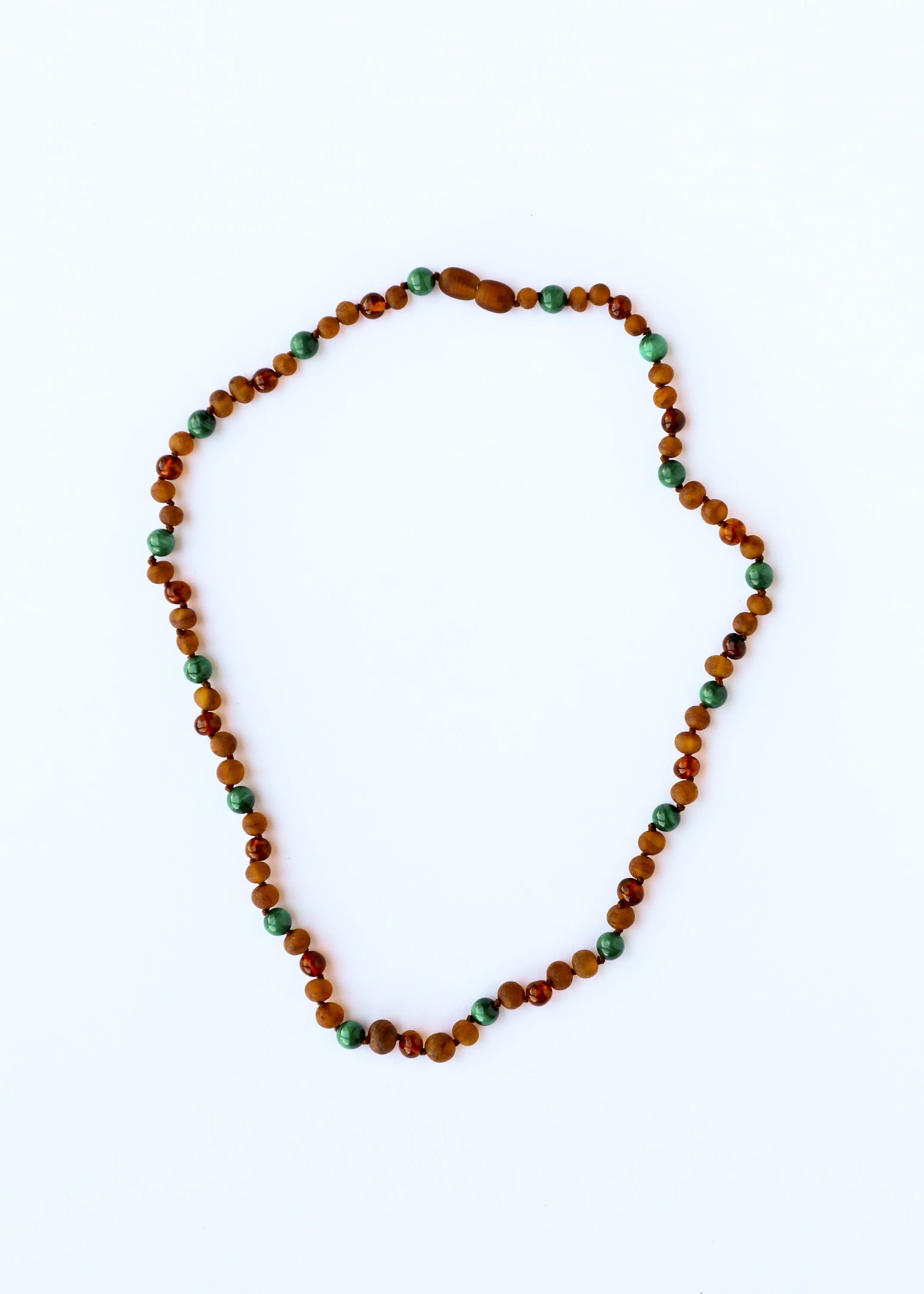 Baltic Sea Amber + Malachite Halo|| Necklace
