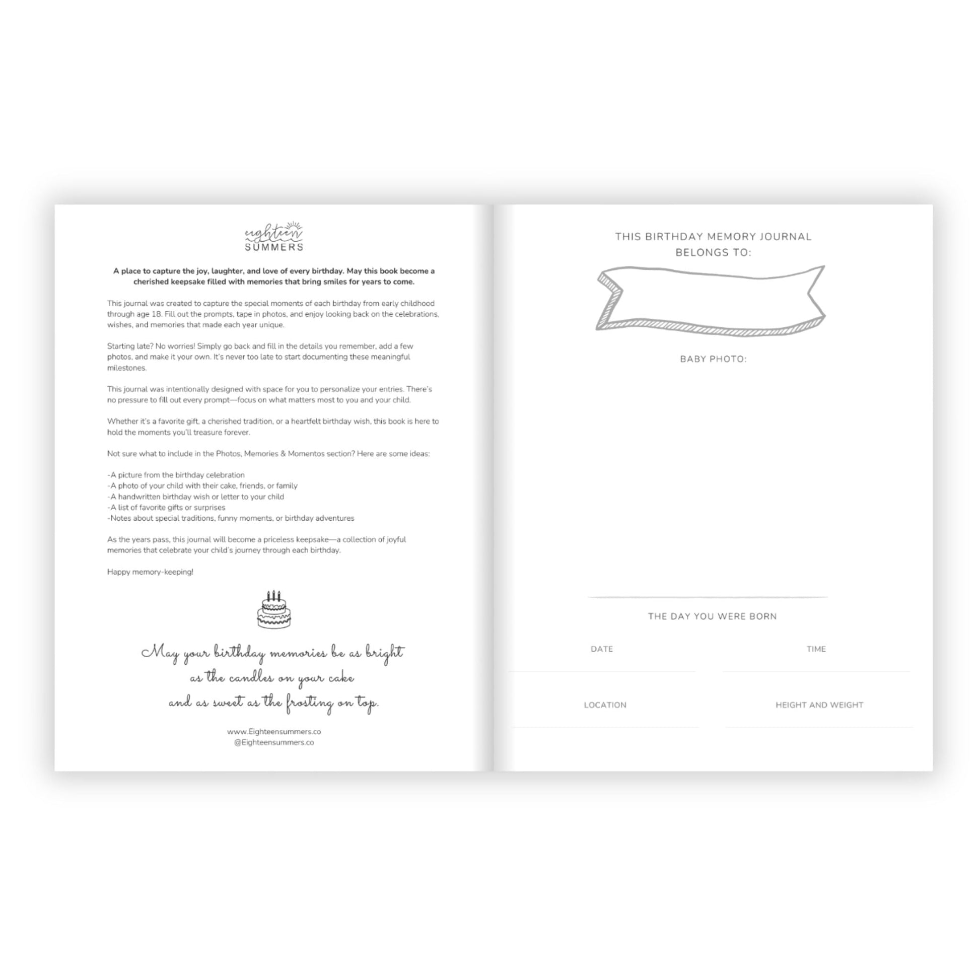 This birthday book (with optional personalization) helps you capture the magic of your child’s special day every year from age 1 to 18. With a simple format designed for busy parents, each year includes space to document the celebration and a birthday interview to preserve their thoughts, dreams, and personality as they grow.