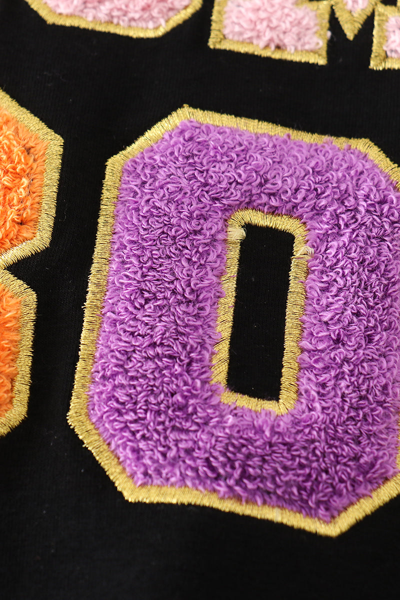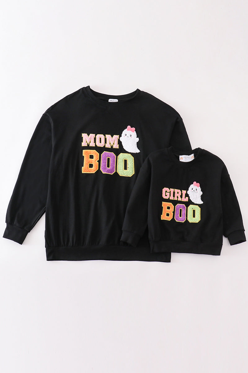 Get spooky this Halloween with our black chenille patch top for both mom and girl! With a playful "BOO" design, this top adds a touch of fun to any costume or outfit. Made with soft chenille material, it's both comfortable and stylish. Double the fun with this matching mom and girl top!