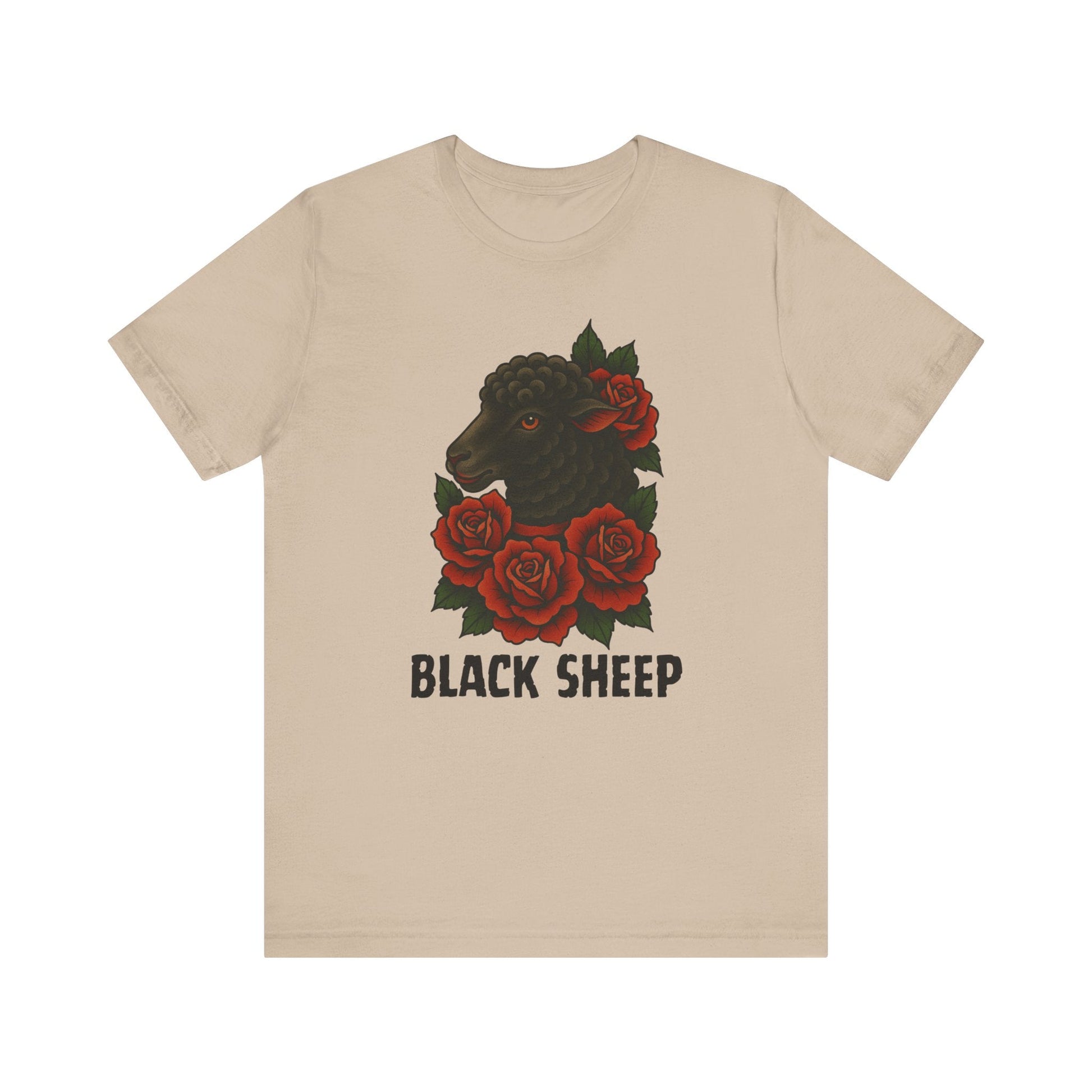 This isn’t your average feel-good t-shirt. This is the Black Sheep, a softstyle tee for the outliers, the lone wolves, the ones who’ve been told to sit down and shut up—but didn’t. Front and center: a bold black sheep surrounded by traditional tattoo-style roses. It's defiance wrapped in comfort.