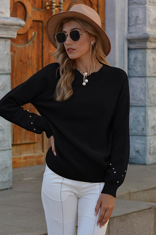 Black Sweater with Beaded Sleeve
