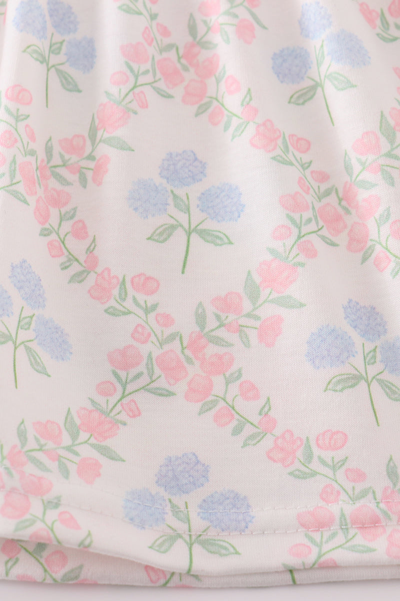 Blue hydrangea print girl set