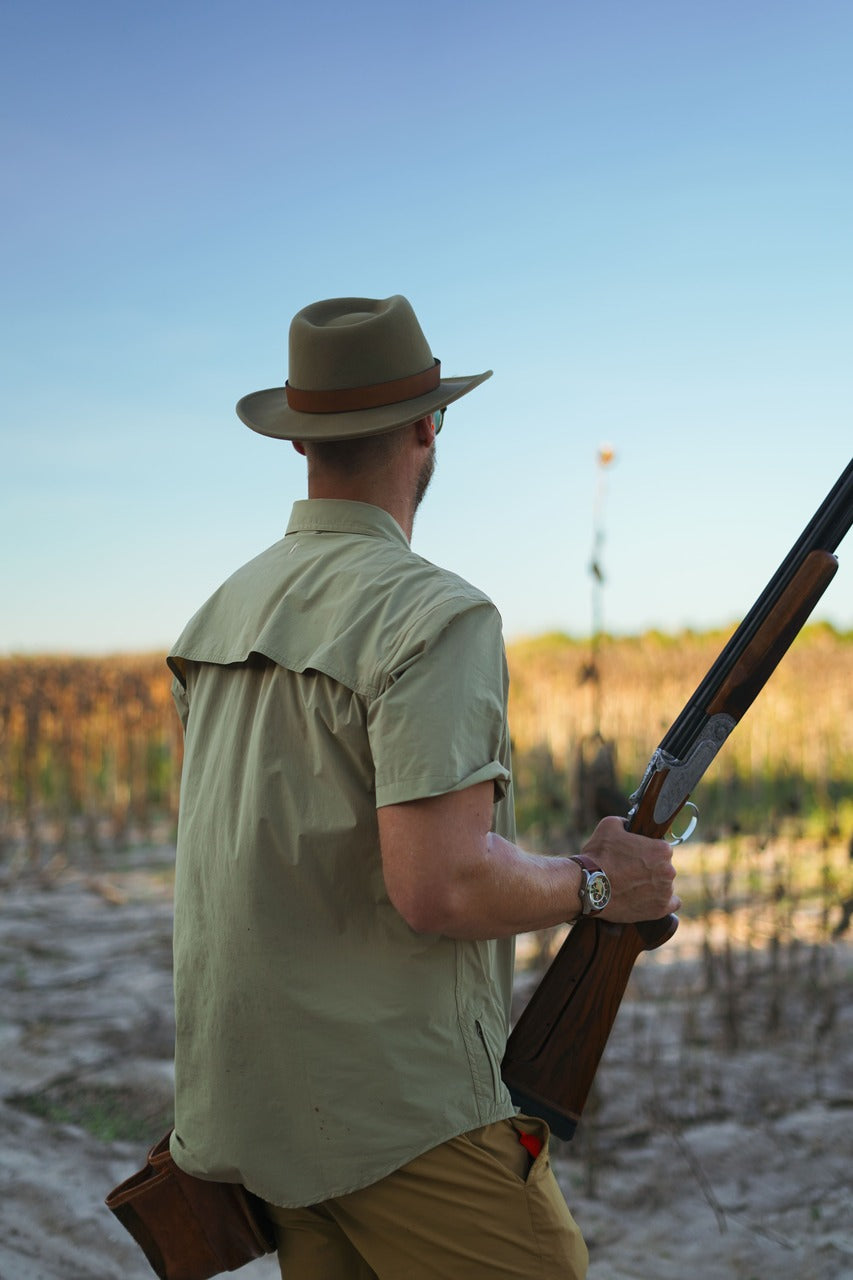 Experience the perfect balance of style and protection with the Ball and Buck Felt Field Hats. Featuring a LiteFelt® material, this hat is water-repellent and shape-retentive. Handmade with our signature leather band adorned with an antique brass Chicago screw, it’s more than just an accessory - it’s a symbol of the rugged, bold lifestyle. Made in the USA and ideal for year-round wear, it’s your best companion whether you’re out adventuring on horseback or kicking back with a cold one after a hard day’s work.