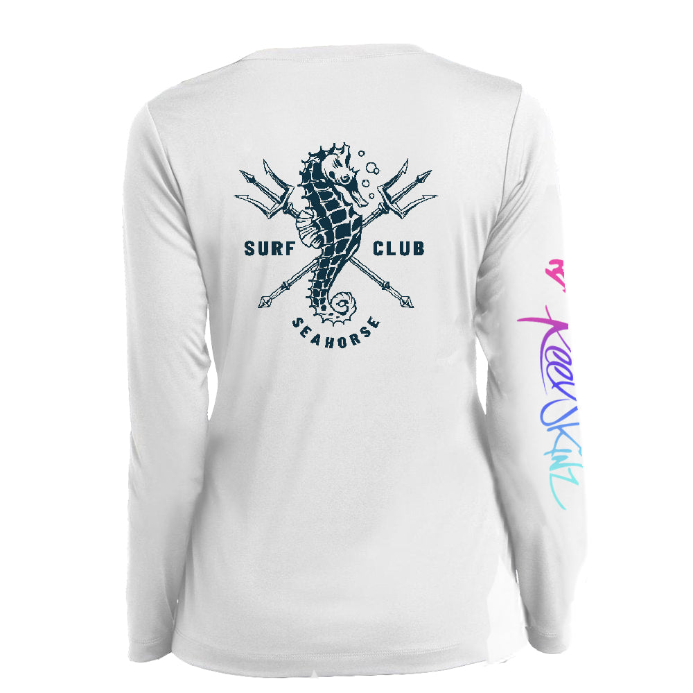 Reelskinz Long Sleeve V-NECK shirts are manufactured for extreme comfort and flexibility. All our long sleeve high performance fishing shirts are all SPF rated 50, and made from the most comfortable, Moisture wicking, and lightest fabrics in the industry. The polyester polyex and 8 way stretch recoil technology also allows for extreme flexibility, quick drying and cooling capabilities. All white shirts are bleach friendly and will not effect colors or prints.