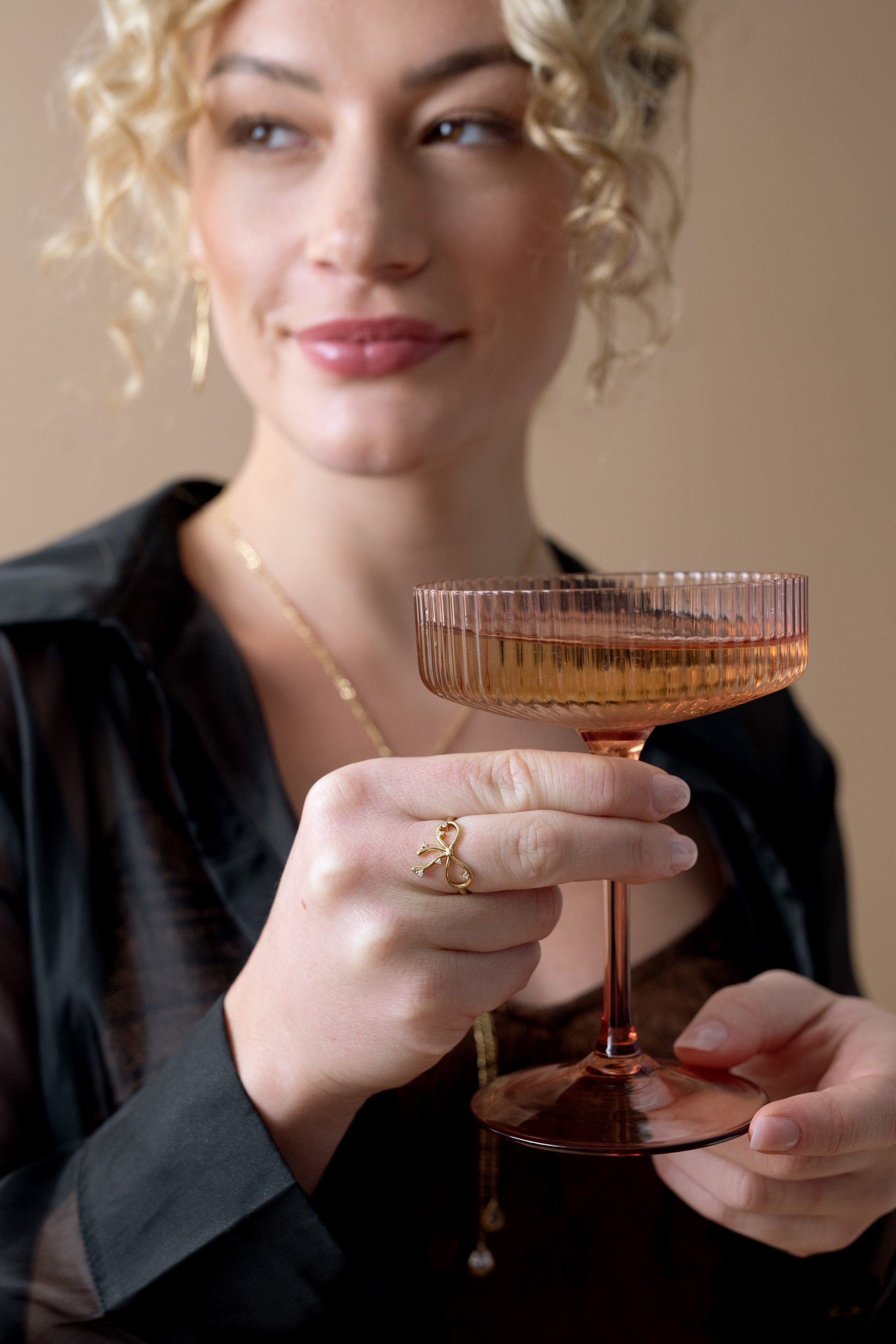 Add an edgy, feminine touch with this coquette bow ring. The asymmetrical bows feature clear crystal geometric accents. Dress it up or down — every outfit looks better with a bow.