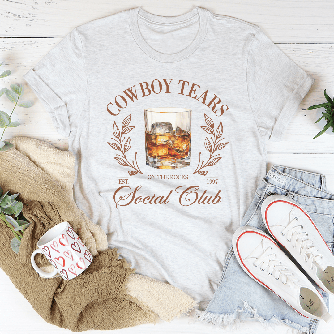 Wear this T-shirt as a proud emblem of the "Cowboy Tears Social Club," a symbol of those who navigate life with courage and aren't afraid to show their true emotions. It's the perfect blend of old-school toughness and modern-day vulnerability, ideal for anyone who believes in the beauty of wearing their heart on their sleeve.