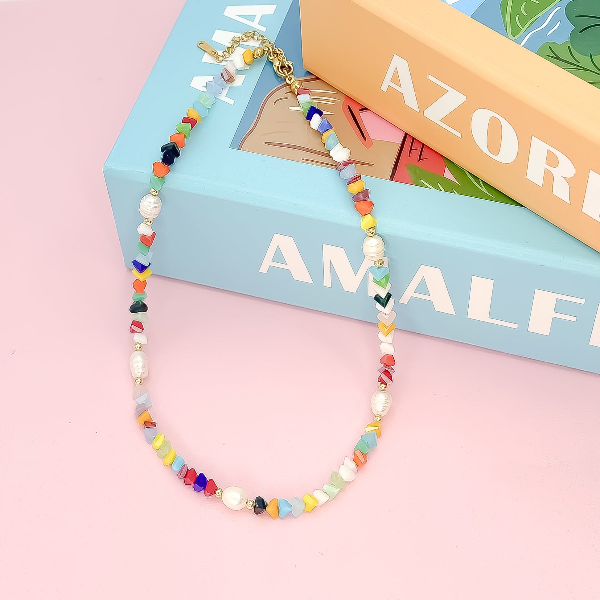 Elevate your look with the timeless beauty of COLORFUL GEMSTONE! Your new go-to for playful style with a polished twist. Featuring natural stone chips, freshwater pearls, and a splash of gold hardware, each necklace adds a dash of personality to any look.