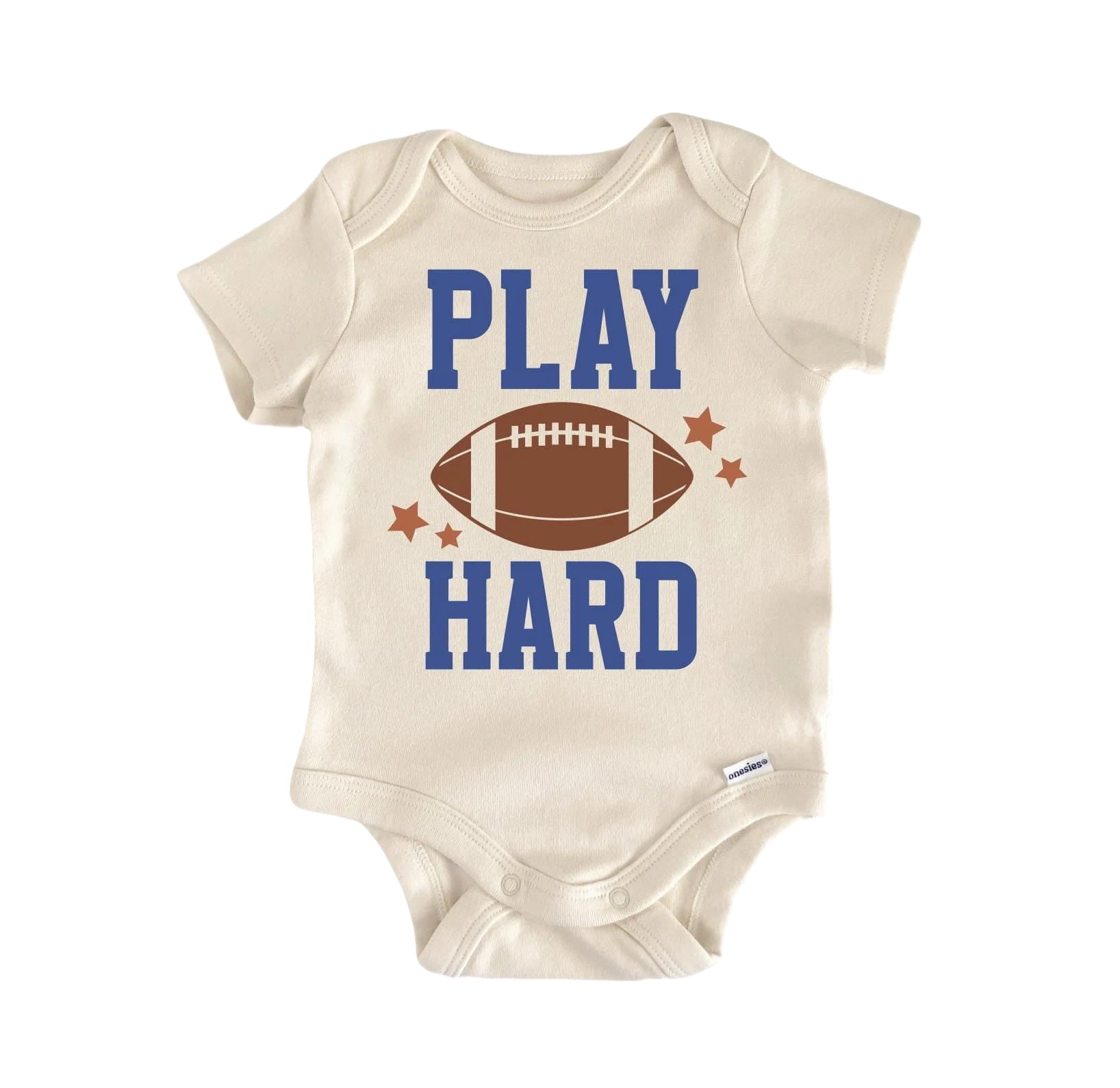 Parents choose Football Play Hard Newborn Baby Onesie® Bodysuit for milestone photos, family visits, and everyday routines because it balances quality, style, and simplicity. It’s registry‑ready, giftable, and easy to care for—just toss it in the wash and it’s ready for more cuddles. Dress it up with a cardigan, add a cozy hat, or keep it minimal for that clean newborn look—this versatile staple fits right into real life with a baby.