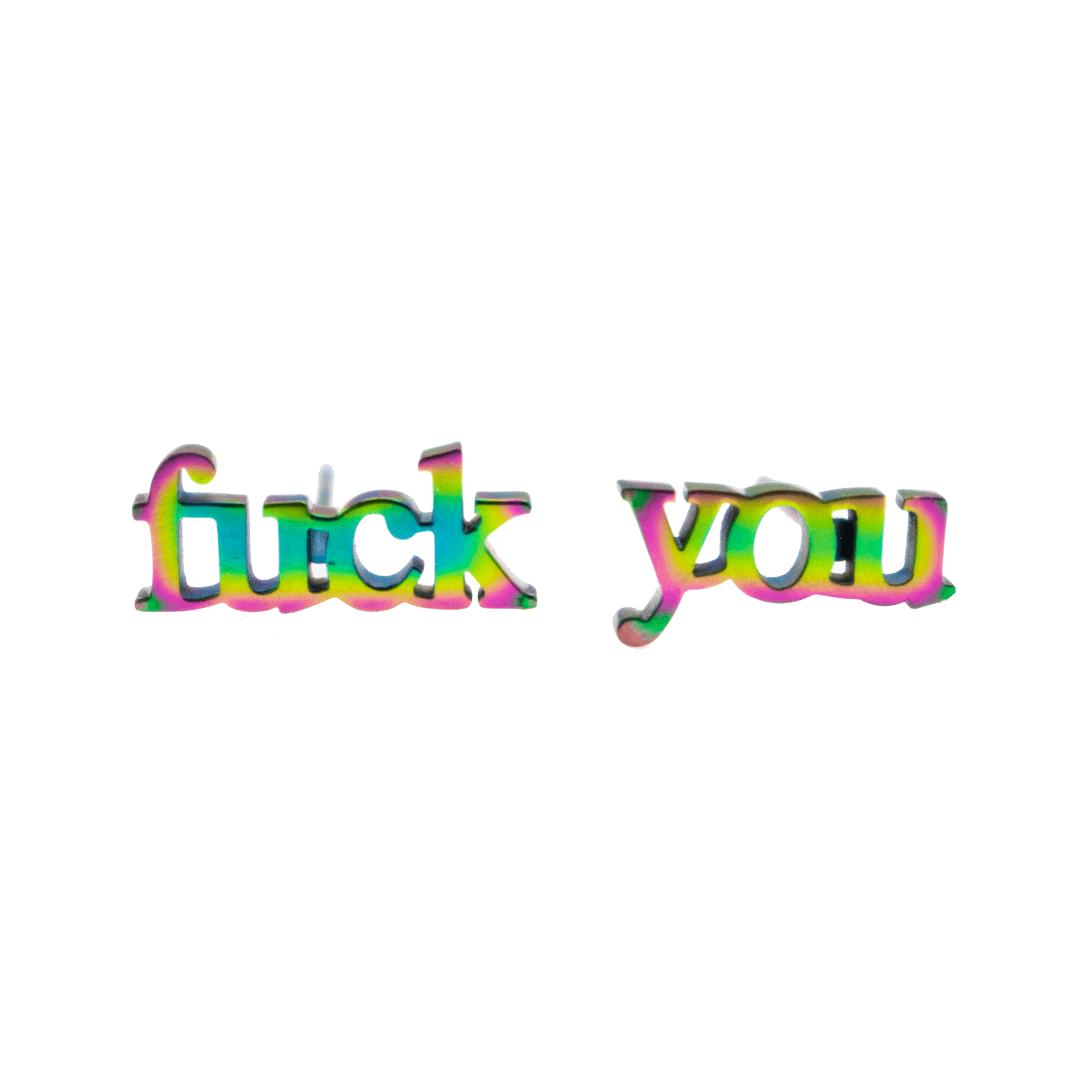 - Choice of 2 Fuck stud earrings, a Fuck + You stud earring set, or Fuck + Off stud earring set
