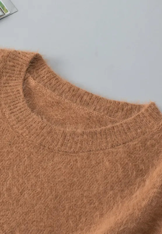Fuzzy Round Neck Half Sleeve Sweater