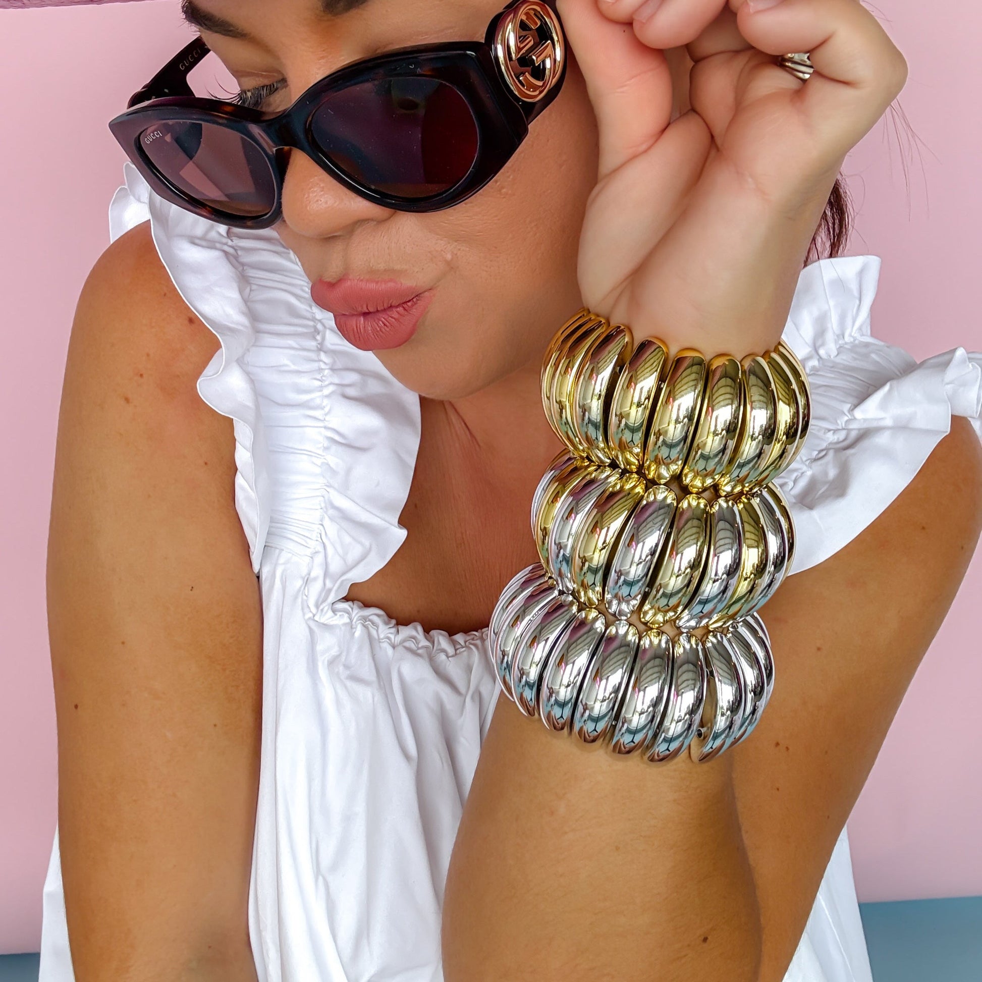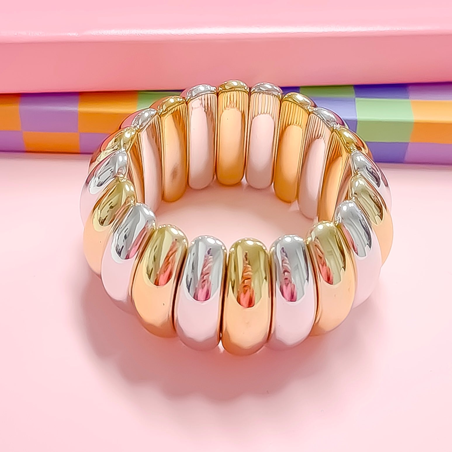 Meet the Glow Up Bracelet — where gold and silver come together in one bold, brilliant moment. With chunky, high-shine beads and a comfy stretch fit, this piece brings instant glam to your everyday or night-out look. Stack it up or let it steal the show solo — either Gold or Silver