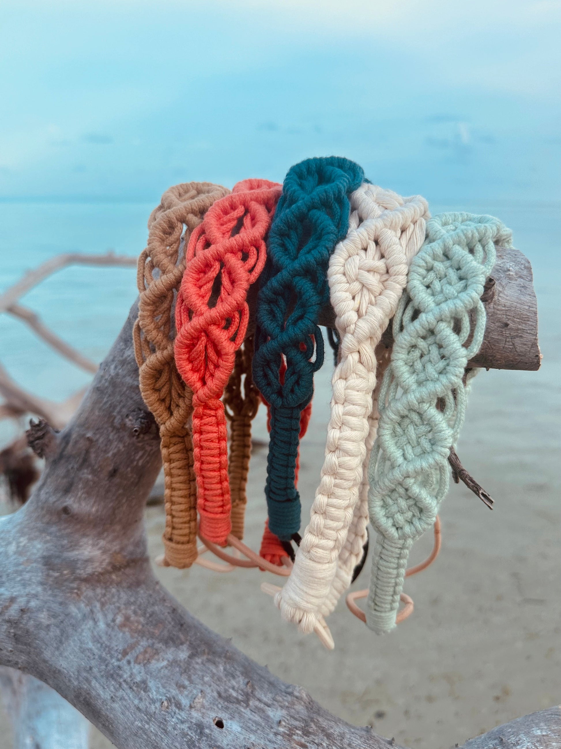 These macrame headbands are handmade with an organic cotton cord and have been artfully designed to last you, a very long time. Each one provides an effortless chic, beachy vibe, instantly! We love them here in the Florida Keys, made locally by one of our beautiful island friend ♡