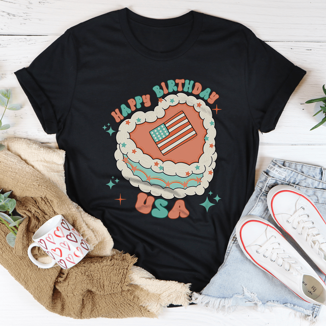 Celebrate the nation’s big day with our "Happy Birthday America" T-shirt. This patriotic tee is perfect for those who love to show their American pride while marking the USA's anniversary in style. It's more than just a piece of clothing; it's a vibrant expression of national pride and festive joy.