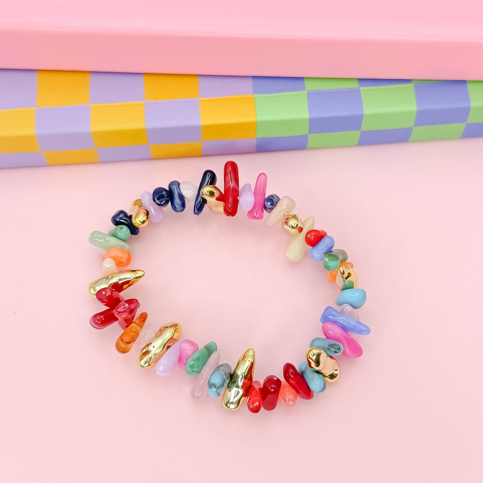 Say hello to your daily dose of joy! The Happy Little Things bracelet is a vibrant celebration of color and whimsy, featuring playful glass chip beads and golden pops that feel like confetti on your wrist. Each piece is a tiny burst of happy energy — perfect for brightening up your outfit (and your mood).