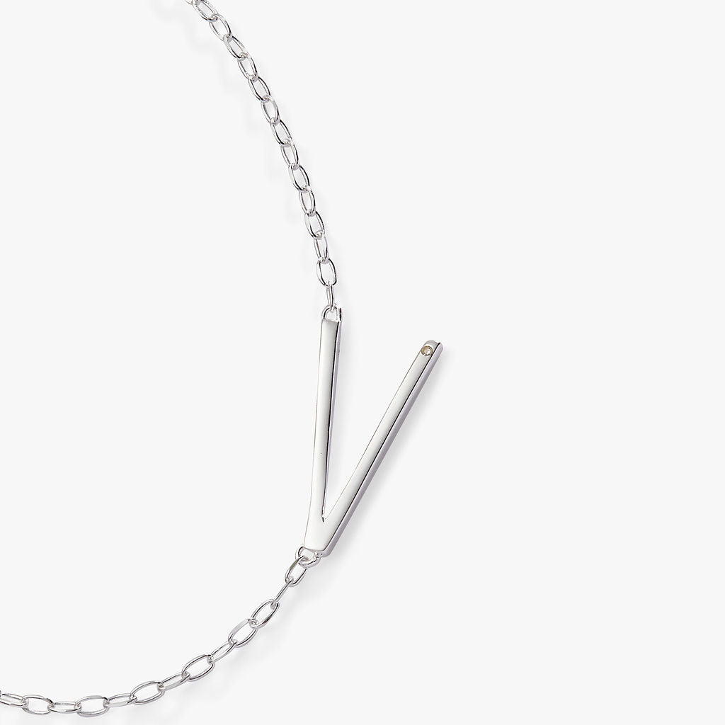 Initial V Precious Elongated Necklace
