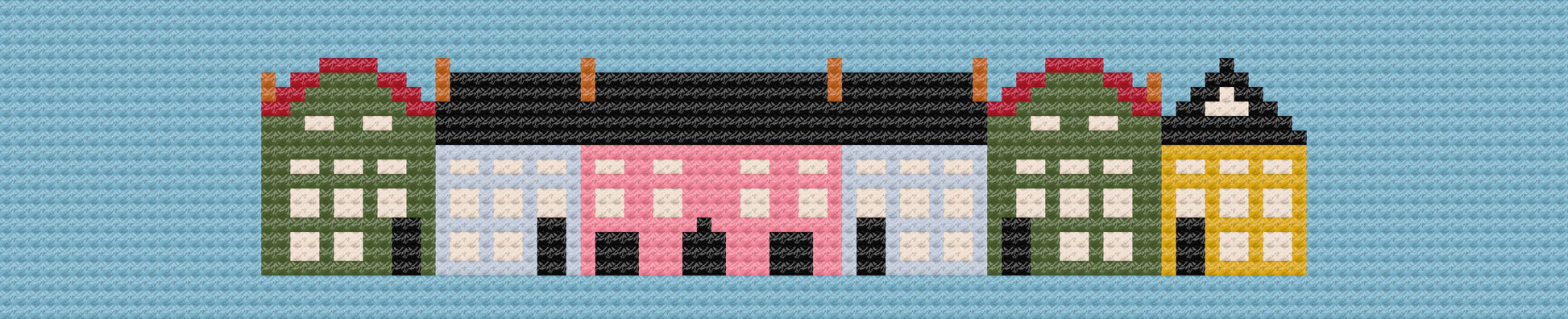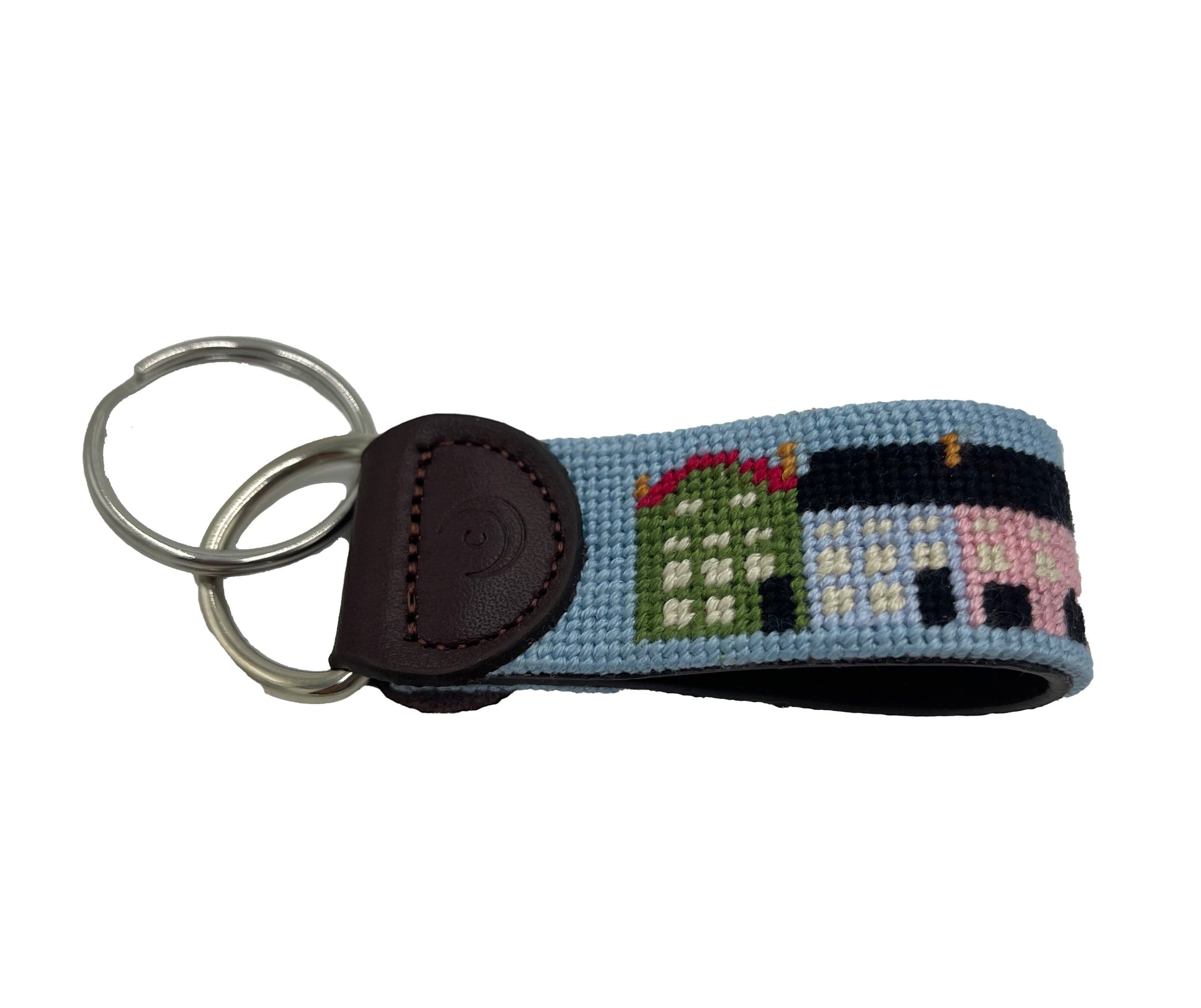 Key Fob - Charleston Rainbow Row Hand-stitched Needlepoint