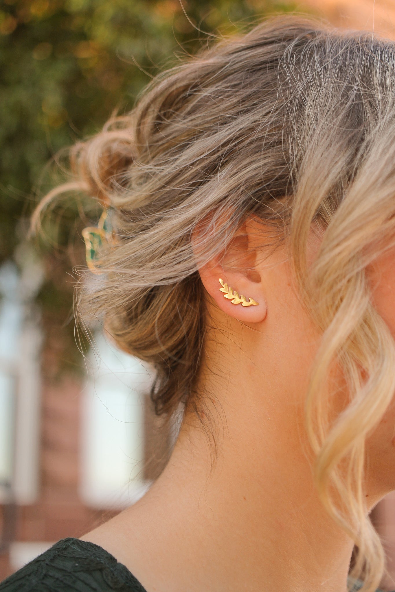 If you haven't heard of climber studs before, let me introduce you to them! Climber studs are a type of stud earring that is meant to be a little bit longer in length than a traditional stud, so that when it's worn it takes up most of the space on your lobe, and give the appearance that it's "climbing" up the side of your ear. And let me tell you... This climber style stud earring is SO ethereal and classy. You NEED this stud in your collection because it is PERFECT for casual and formal occasions alike!