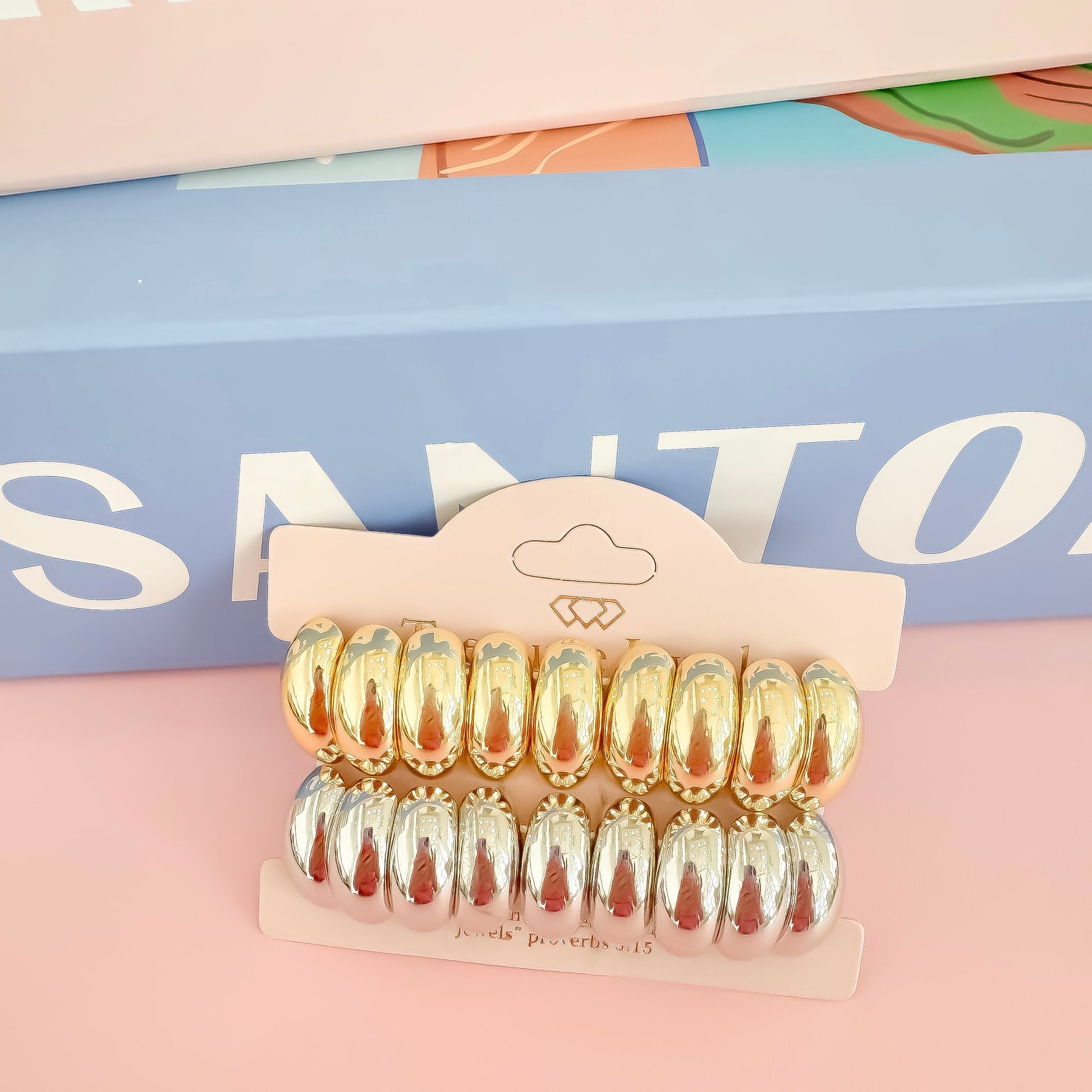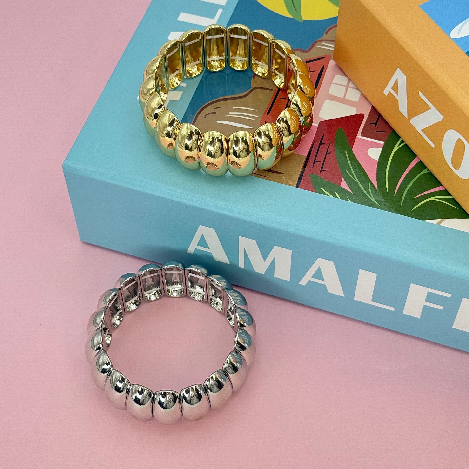 - This bold bracelet set includes two chunky high-shine bangles and is inspired by the contrast of the moon and sun, perfect for stacking or wearing solo. Sleek, modern and easy to style.