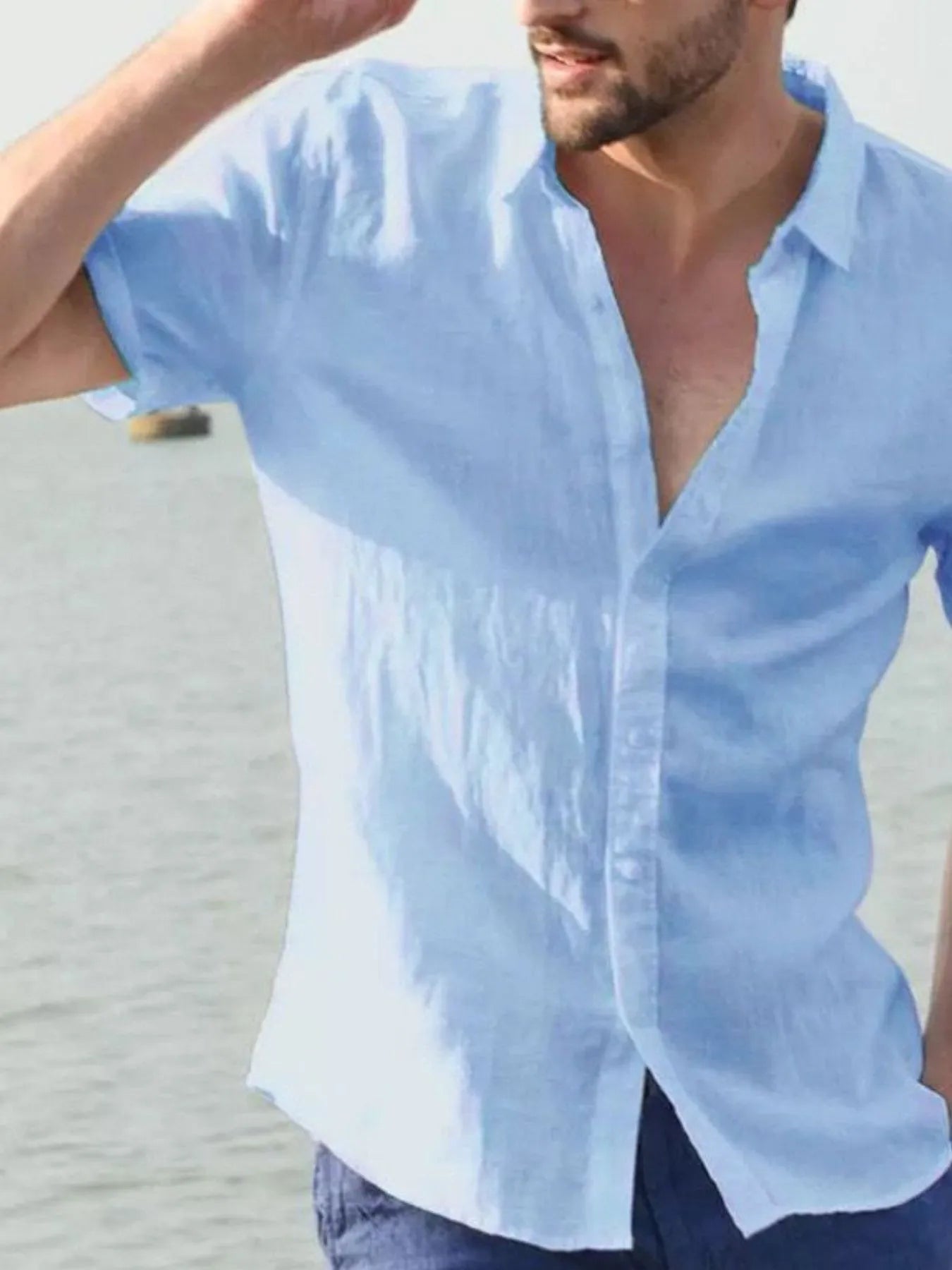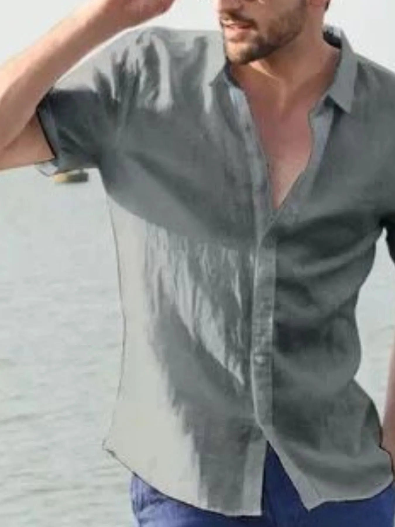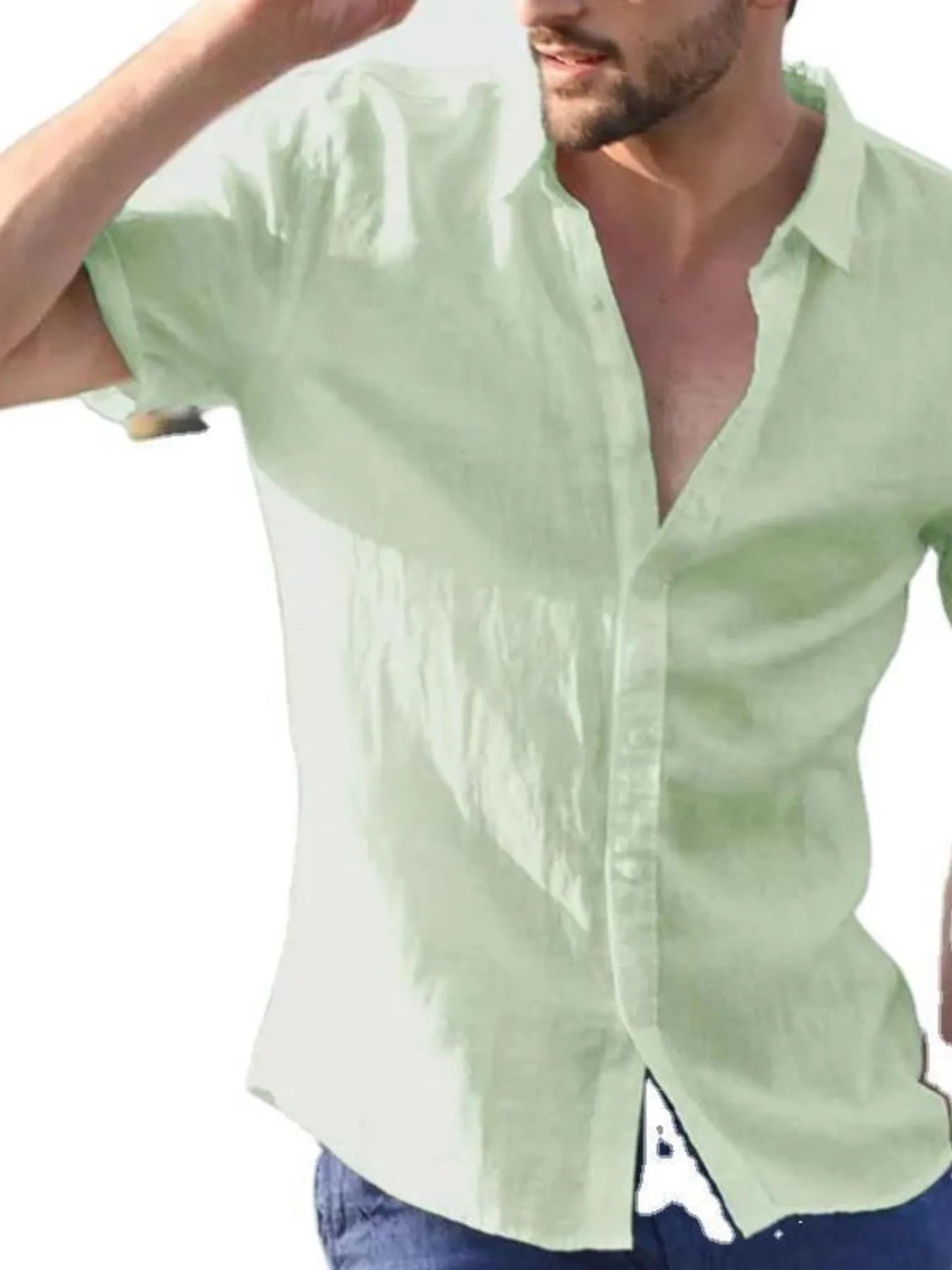 Men's Full Size Classic Linen Button Down Short Sleeve Shirt Plus Size