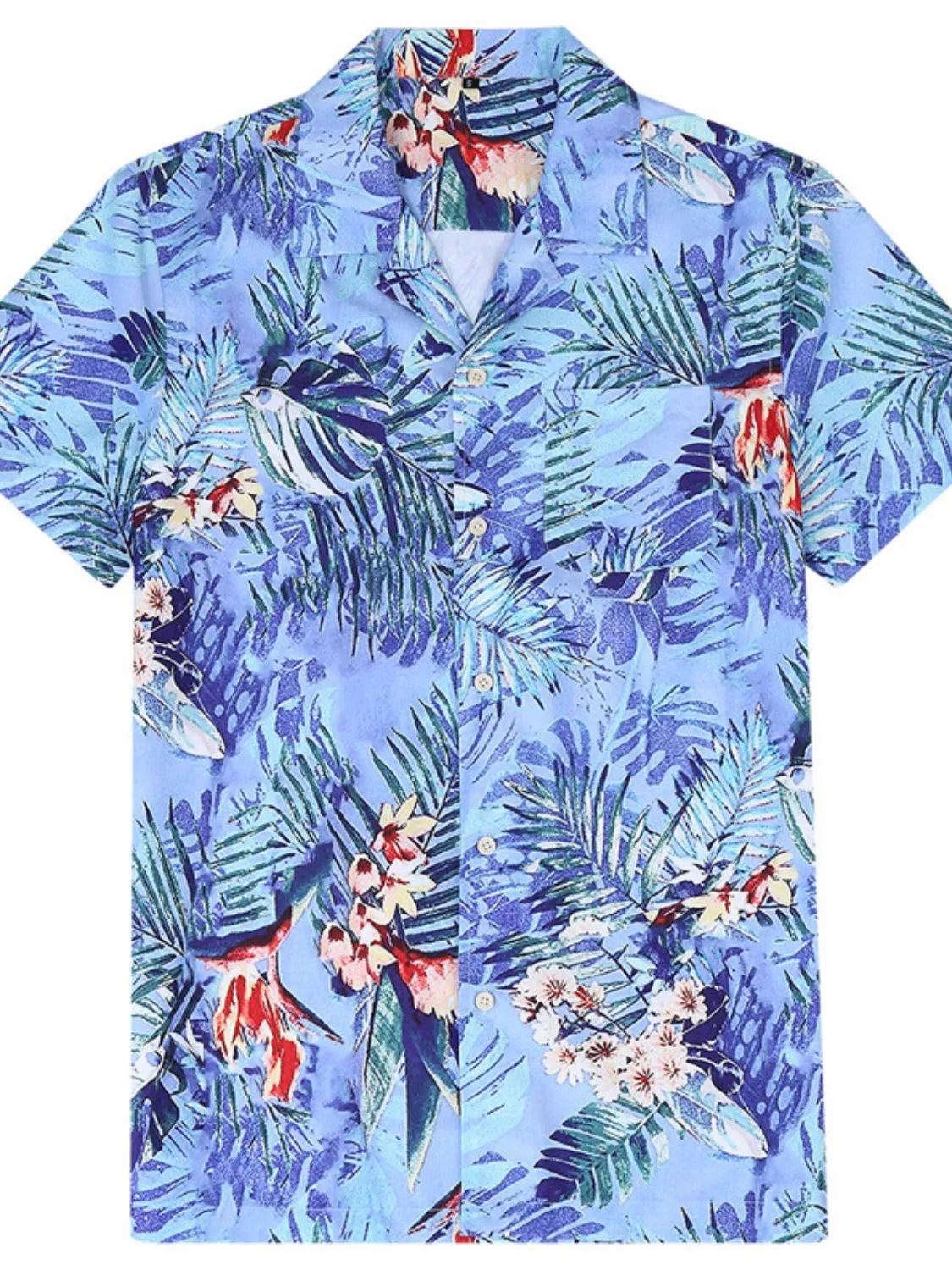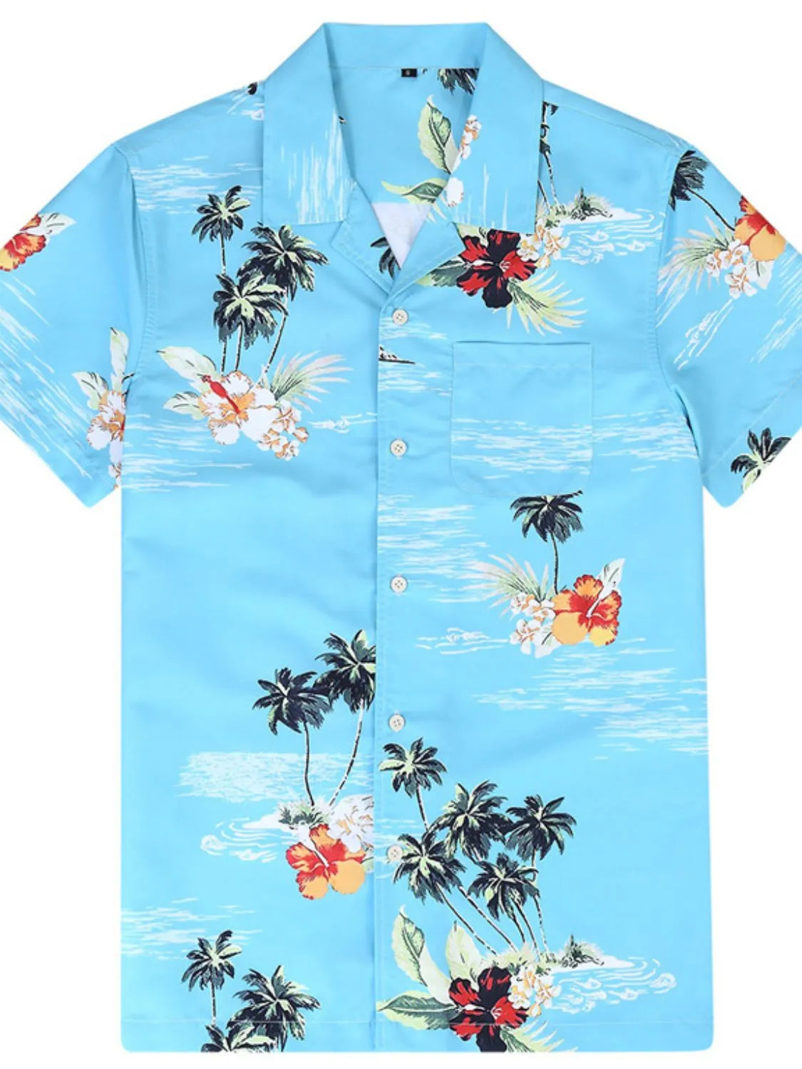 Men's Hawaiian Print Short Sleeve Button Down Shirt