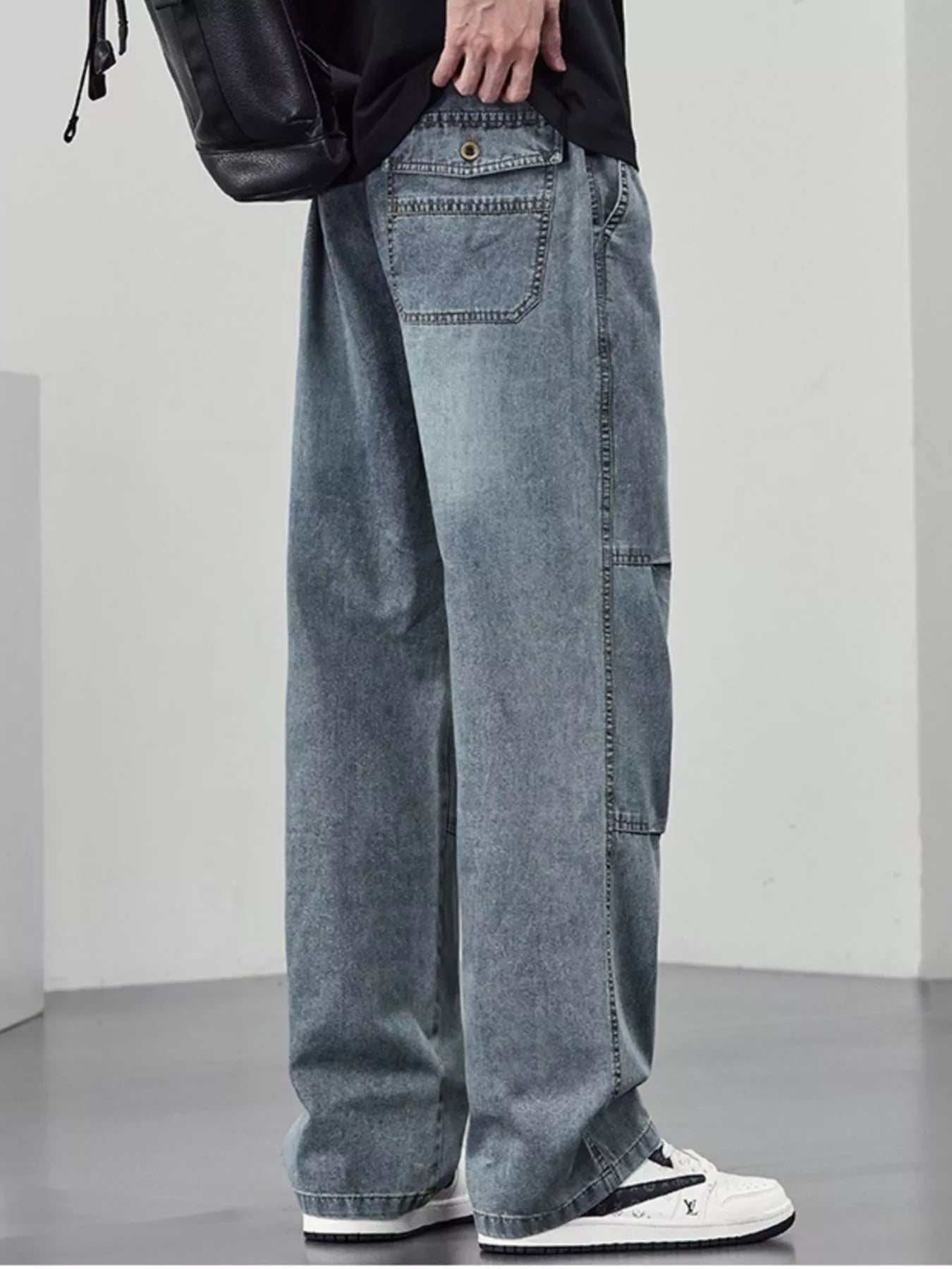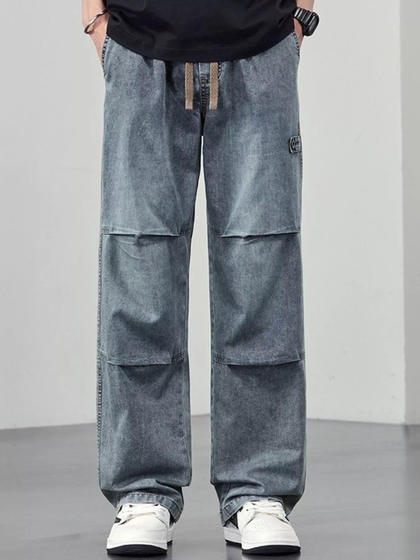 Men's Plus Size Wide Leg Drawstring Jeans