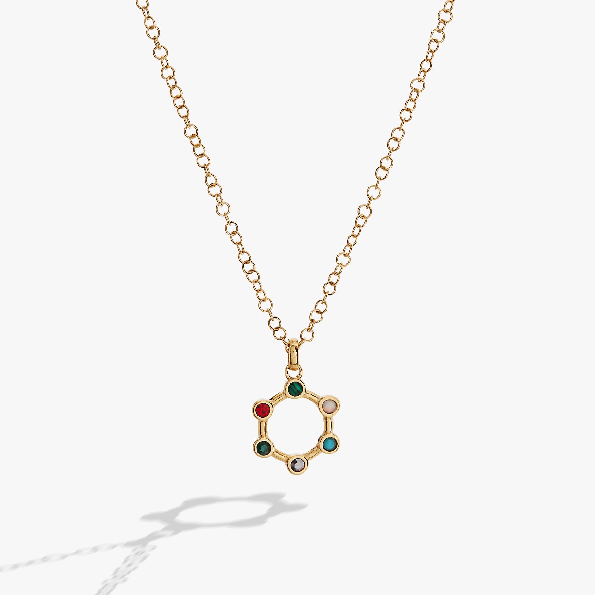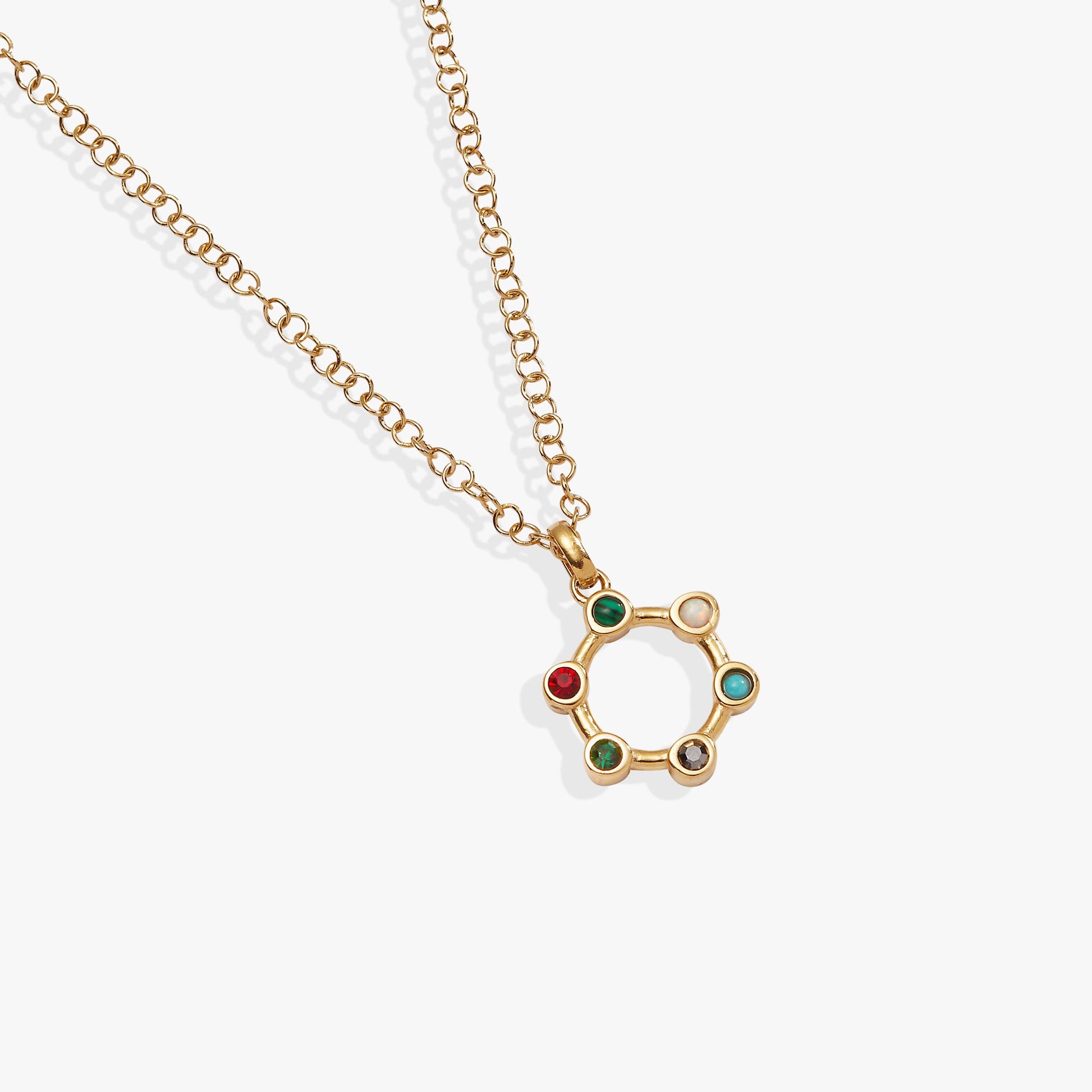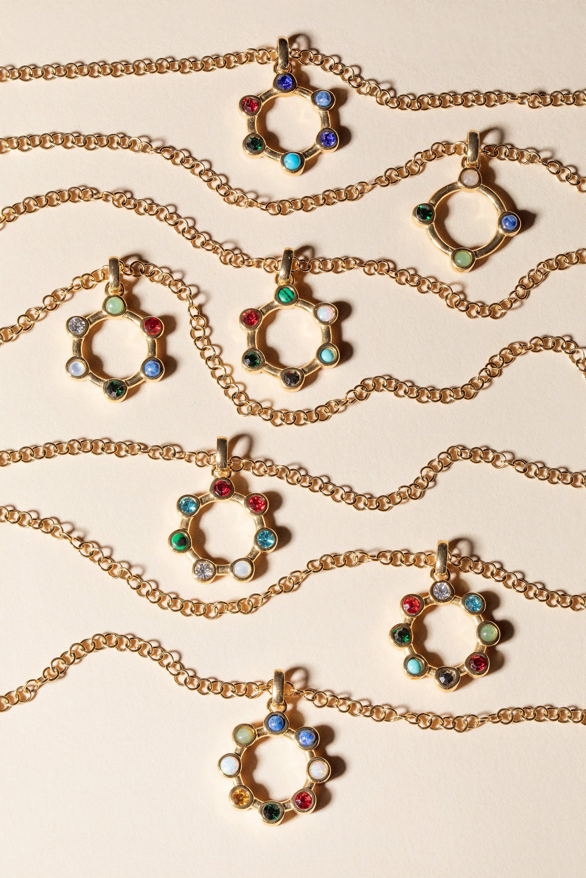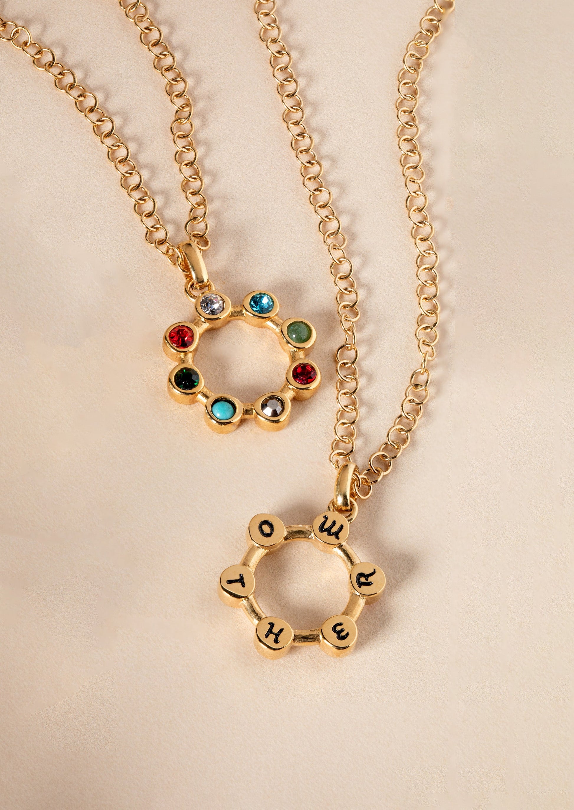 She knows you love her, but spell it out with this mother crystal necklace, which holds a secret: on the interchangeable charm, each letter stands for a different colored crystal. M is malachite, O is for opal, T is for turquoise, H is for hematite, E is for emerald and R is for ruby. It's a secret message just for her, from your heart.