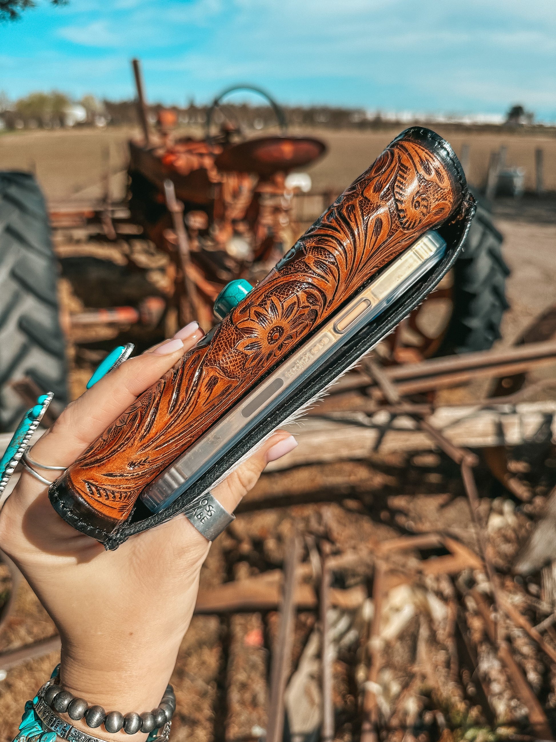 Luxurious Western! The Nashville Wallets are the perfect pairs to your Nashville Gunner Purses. Featuring a faux turquoise stone, tooling, cowhide, and plenty of storage space.