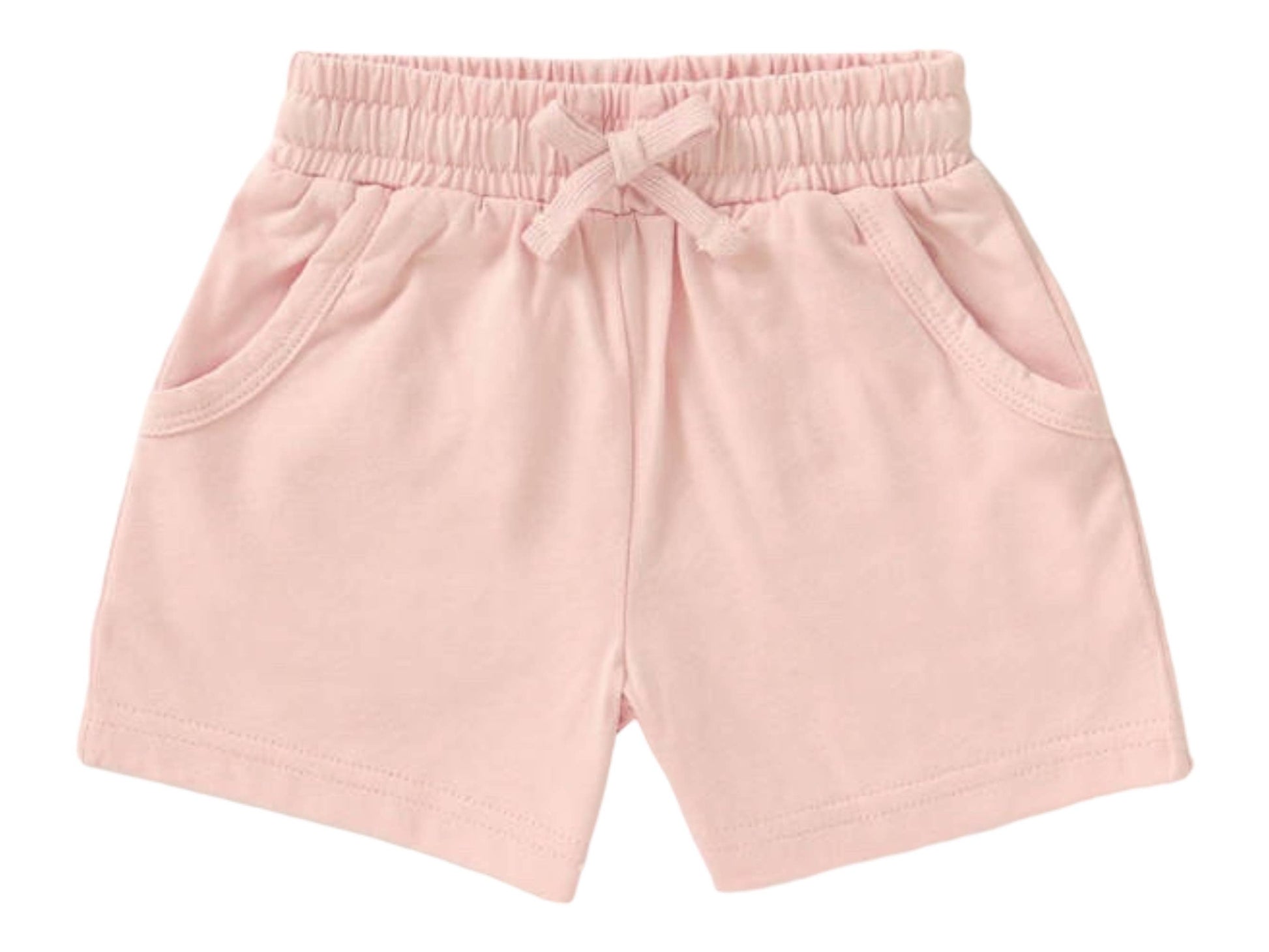 With their relaxed cut design, these shorts provide the perfect blend of style and comfort, allowing your child to move and play freely. Featuring pockets for added convenience, these shorts are available in neutral pastel colors that are both cute and versatile, making them easy to pair with other outfits.