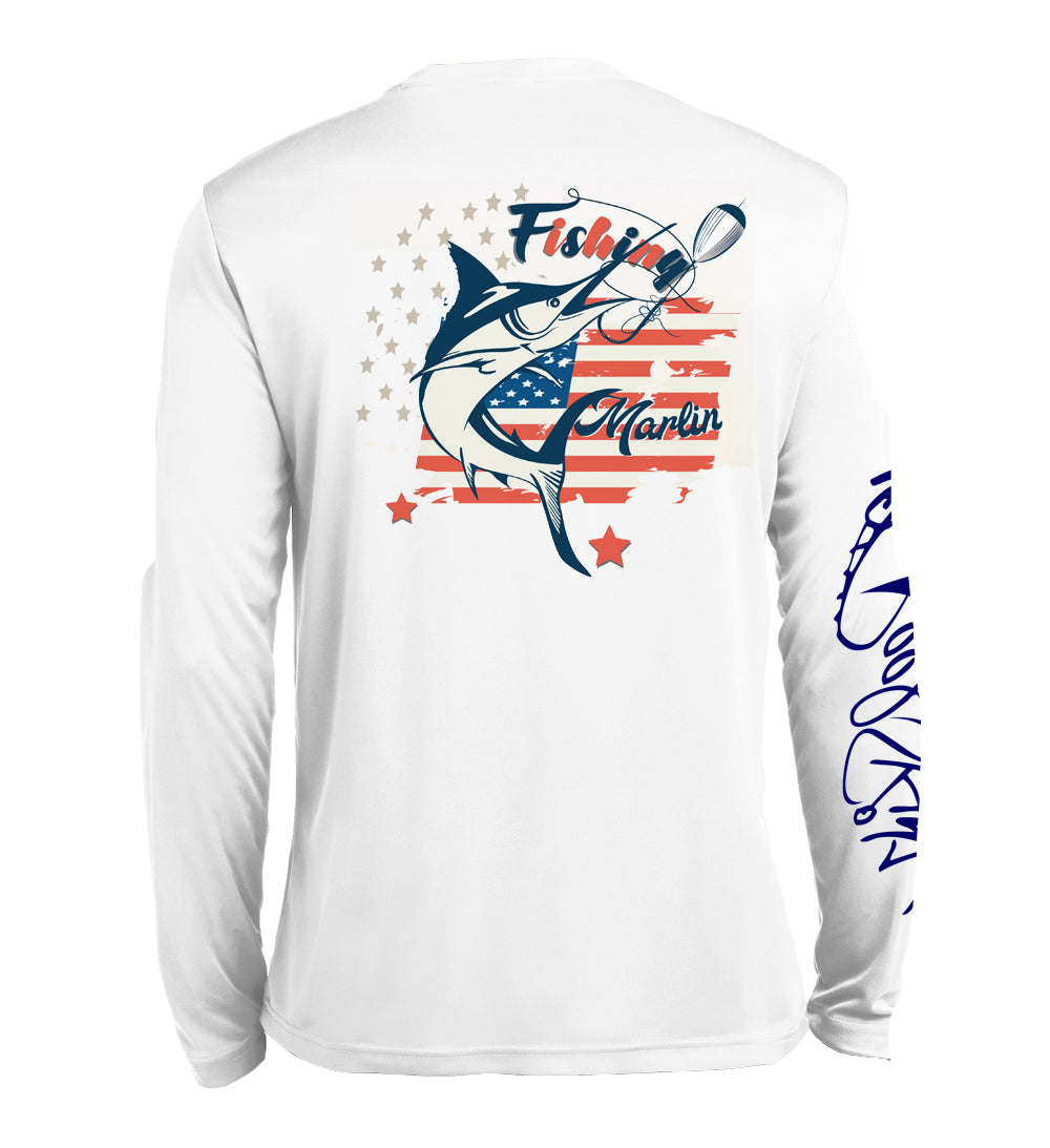 Reelskinz Long Sleeve fishing shirts are manufactured for extreme comfort and flexibility. All our long sleeve high performance fishing shirts are all SPF rated 50, and made from the most comfortable, Moisture wicking, and lightest fabrics in the industry. The polyester polyex and 8 way stretch recoil technology also allows for extreme flexibility, quick drying and cooling capabilities. All white shirts are bleach friendly and will not effect colors or prints.
