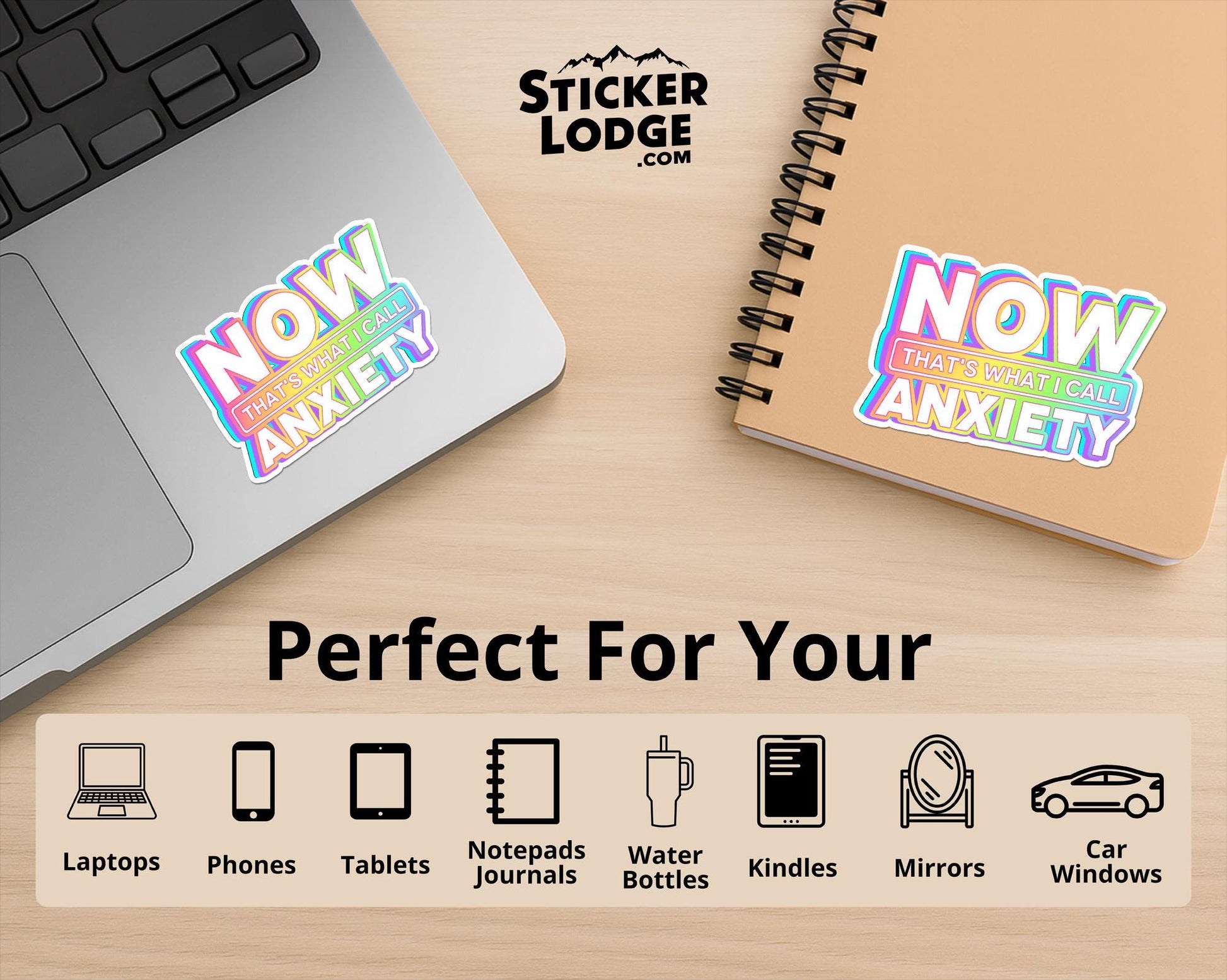 Our Now Thats What I Call Anxiety Vinyl Sticker is waterproof, durable, and perfect for personalizing your laptops, water bottles, phone cases, tablets, Kindles, planners, notebooks, journals, tumblers, mugs, mirrors, cars, motorcycles, and more!