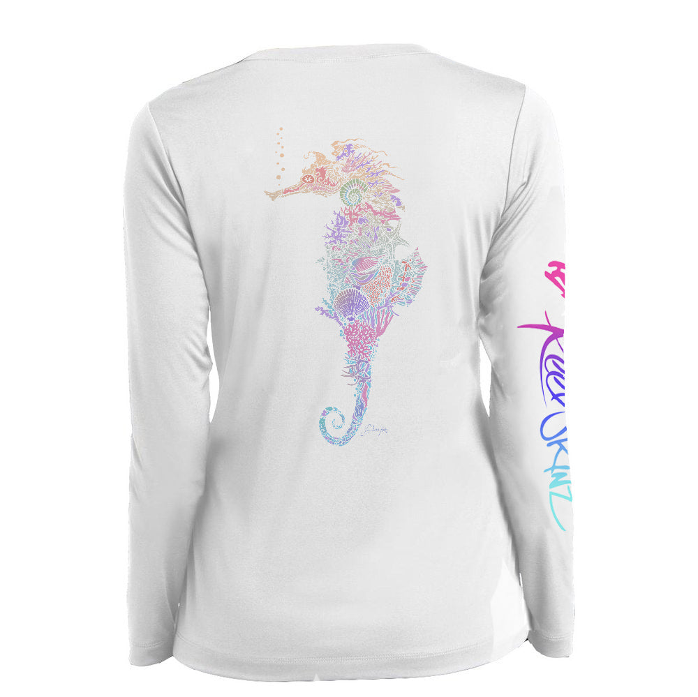 Reelskinz Long Sleeve fishing shirts are manufactured for extreme comfort and flexibility. All our long sleeve high performance fishing shirts are all SPF rated 50, and made from the most comfortable, Moisture wicking, and lightest fabrics in the industry. The polyester polyex and 8 way stretch recoil technology also allows for extreme flexibility, quick drying and cooling capabilities. All white shirts are bleach friendly and will not effect colors or prints.