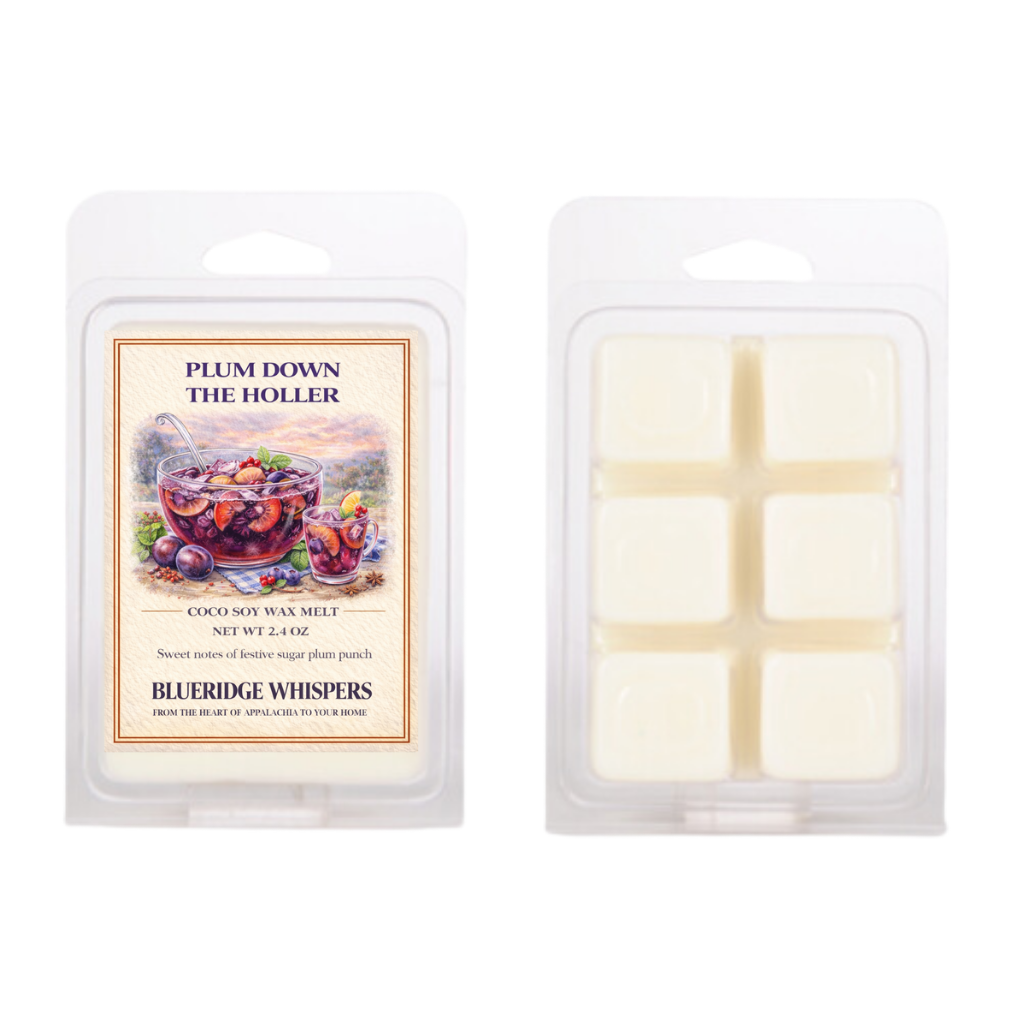 Whether you’re hosting family, decorating the tree, or simply creating a cozy nook for yourself to unwind, Plum Down the Holler brings a festive Appalachian glow to your space. It’s joyful, whimsical, and just a smidge ornery — the perfect scent to lift your spirits, spark a smile, and remind you that the holidays are meant to be enjoyed, not rushed.