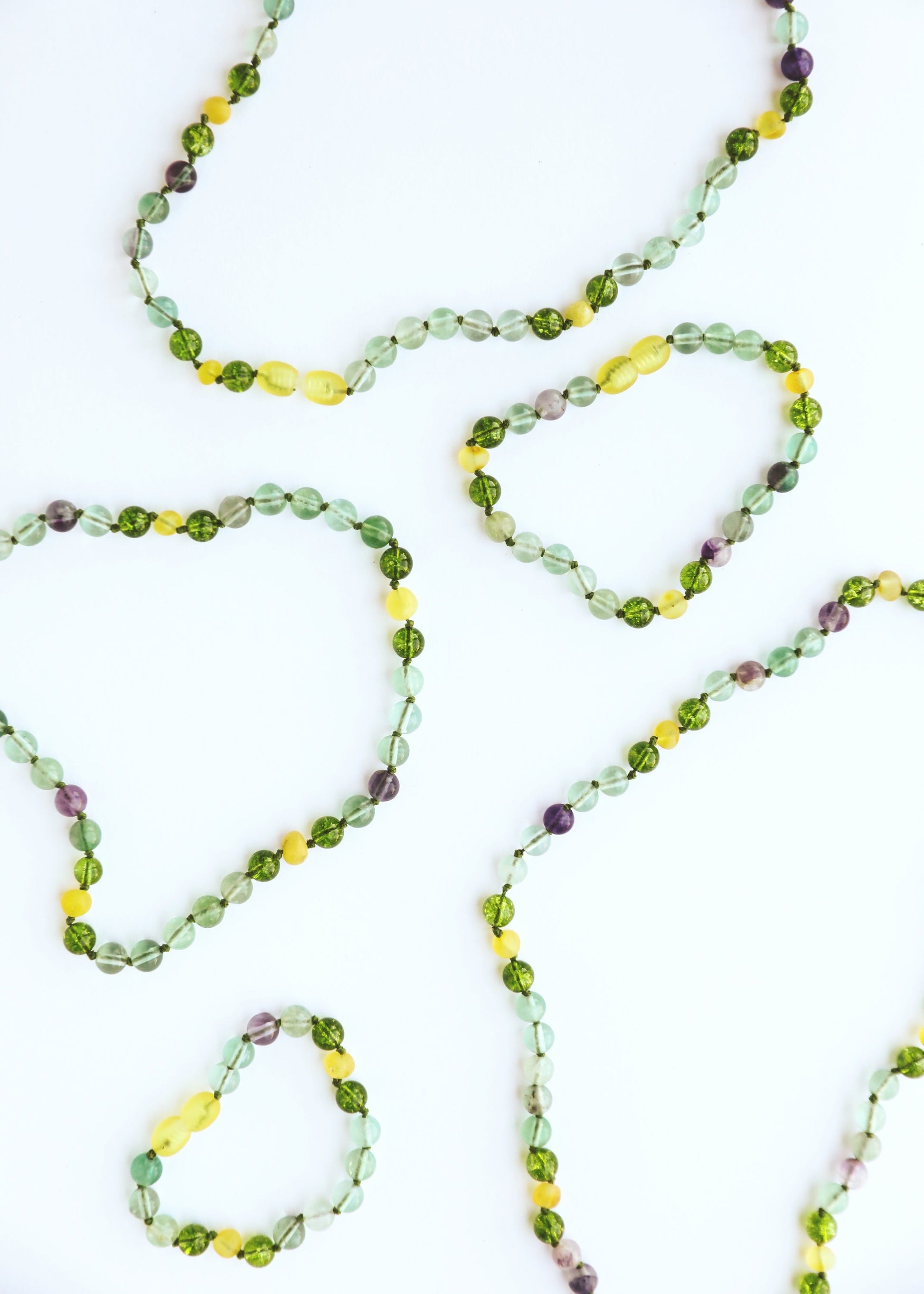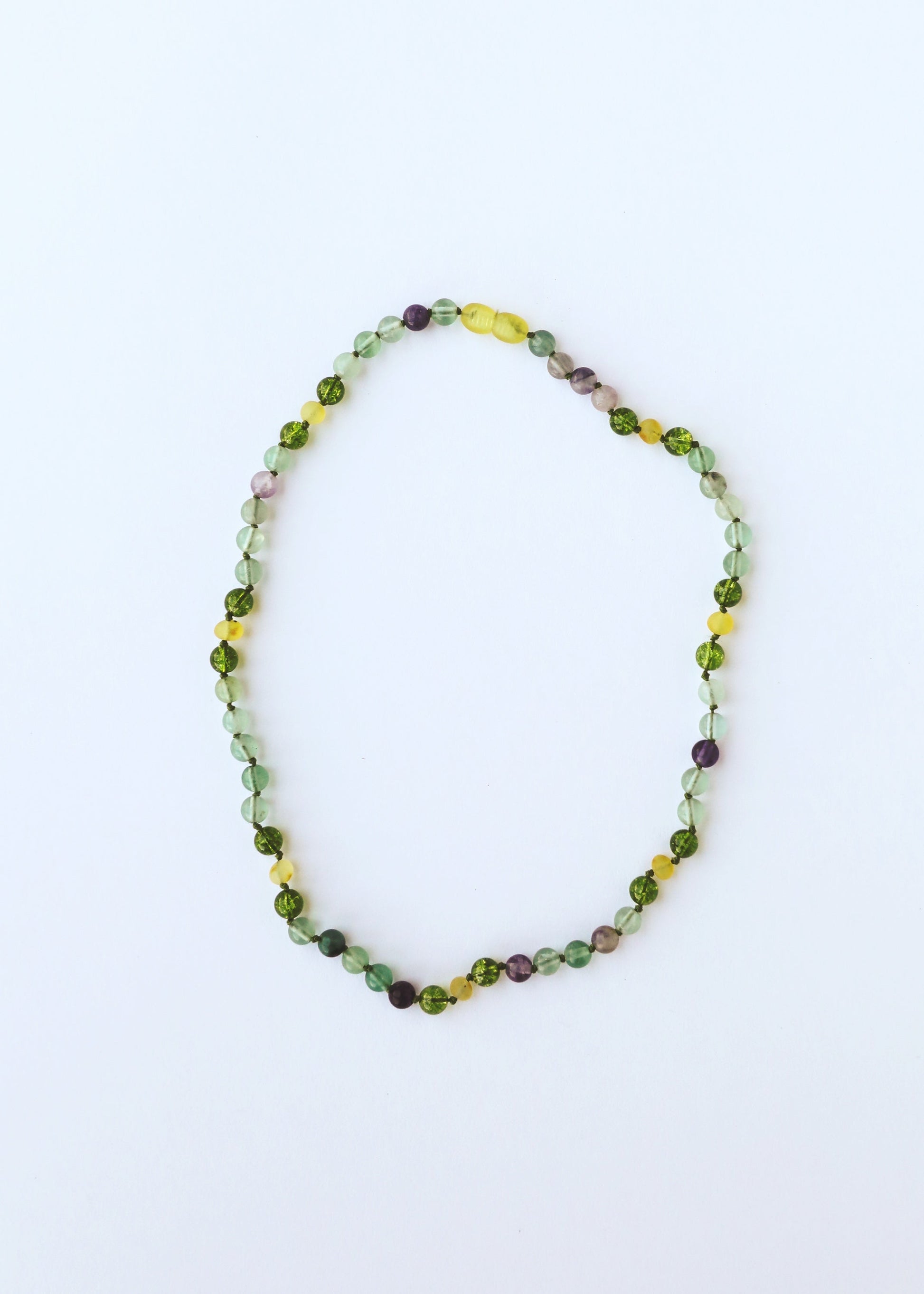 Raw Baltic Sea Amber + Fluorite + Peridot || Gemstone Necklace