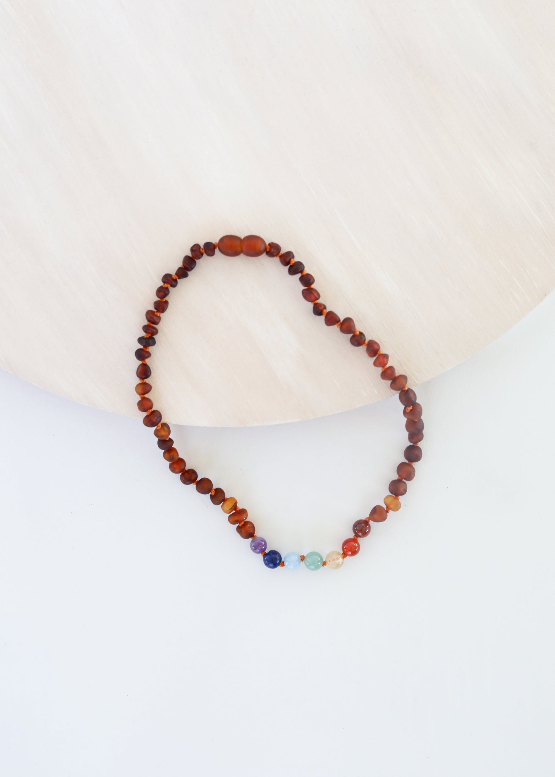 Raw Cognac Baltic Amber + CHAKRA Crystals || Necklace