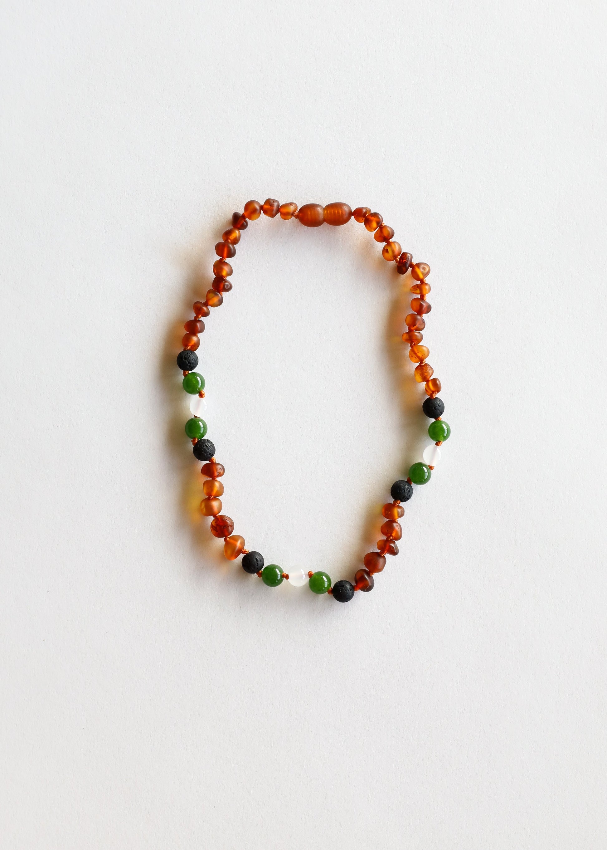 Raw Cognac Baltic Amber || Lava + Jade + Agate || Necklace