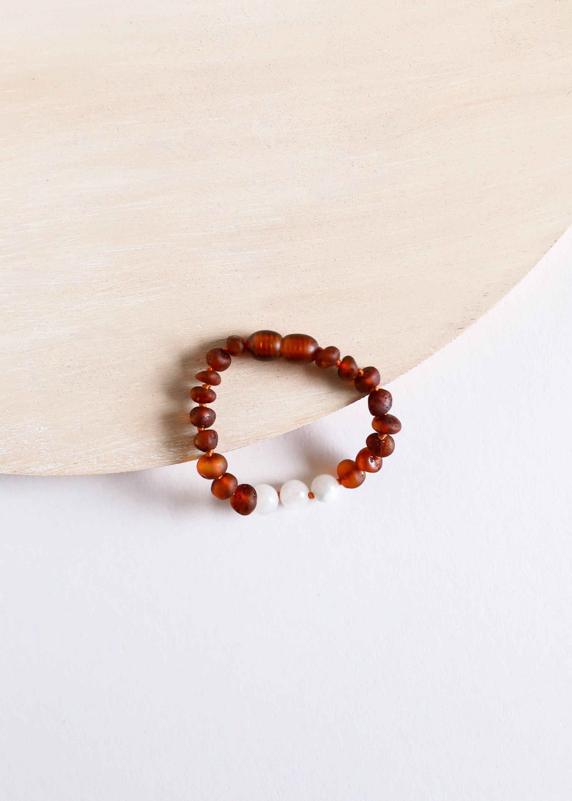 Raw Cognac Baltic Amber + Moonstone || Anklet • Bracelet