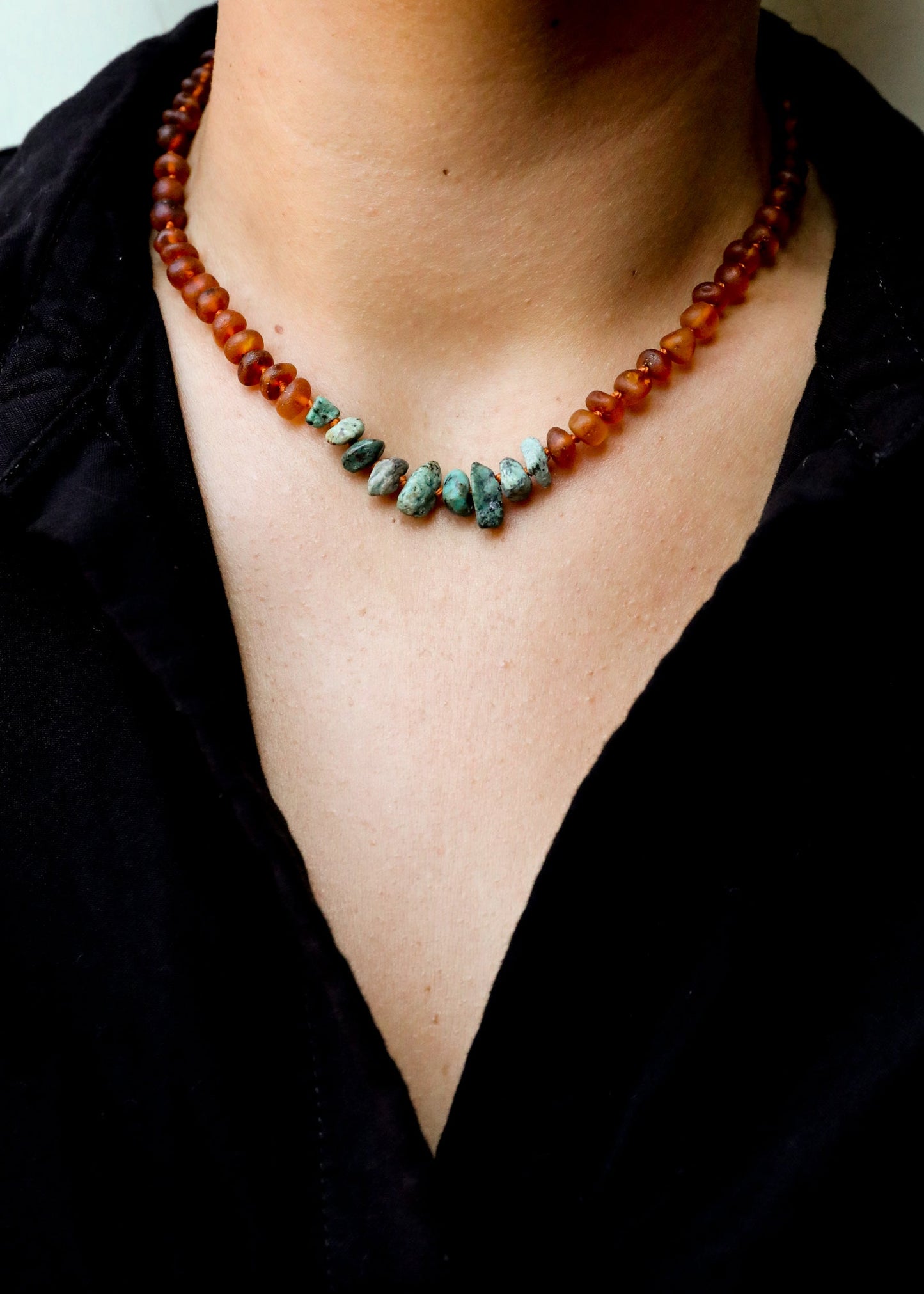 Raw Cognac Baltic Amber + Raw Turquoise Jasper || Necklace