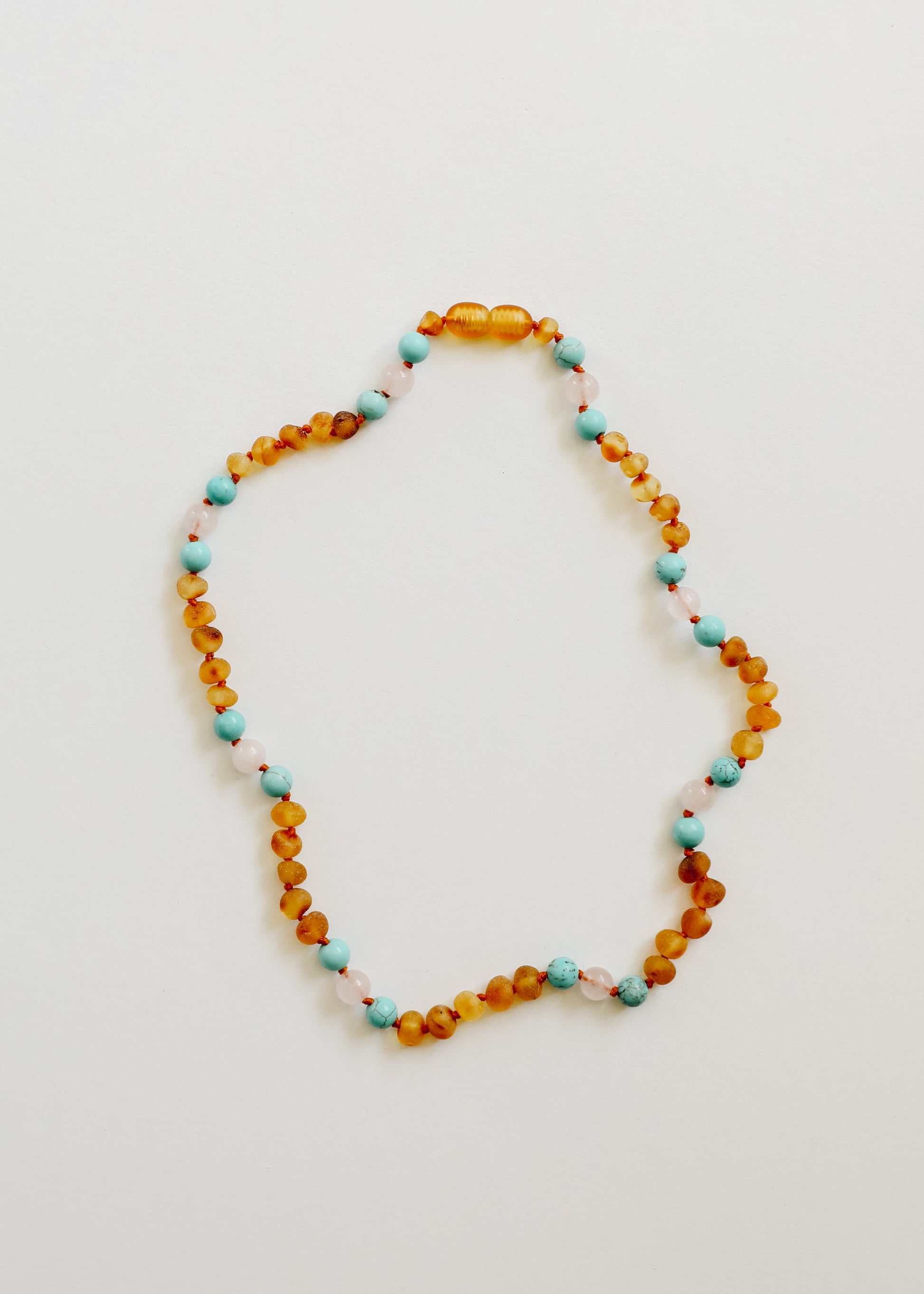 Raw Honey Baltic Amber and Natural Turquoise + Rose Quartz || Necklace