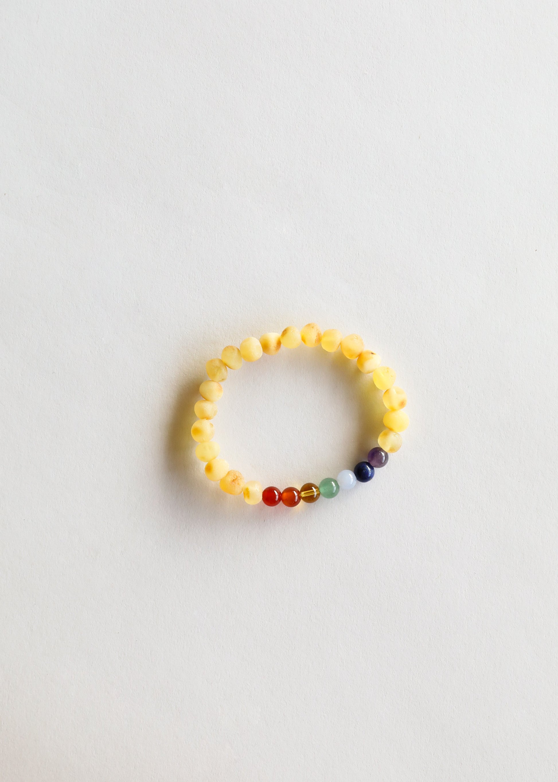 Raw Honey Baltic Amber + CHAKRA Crystals || Adult Bracelet