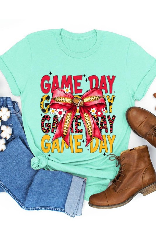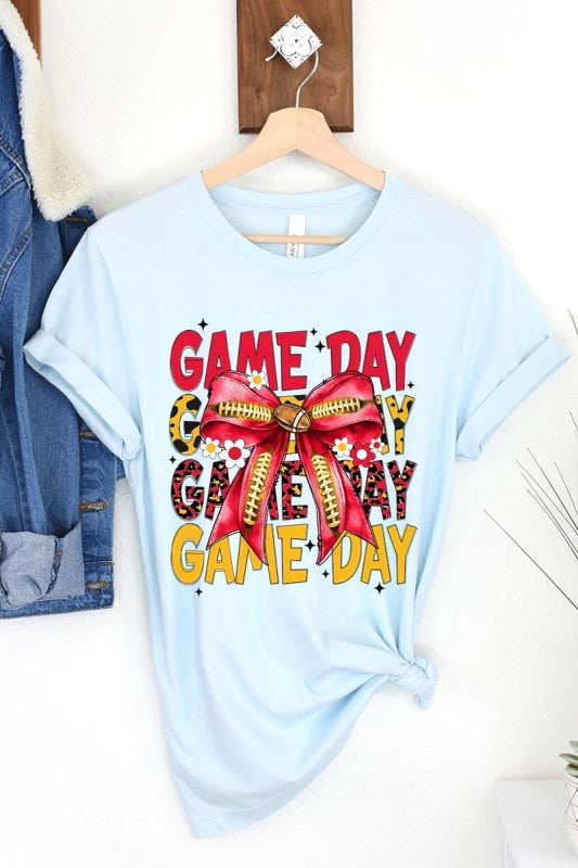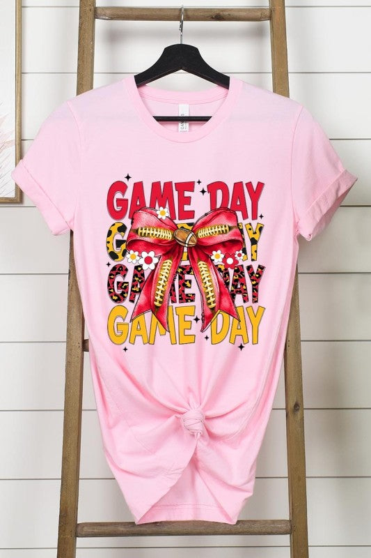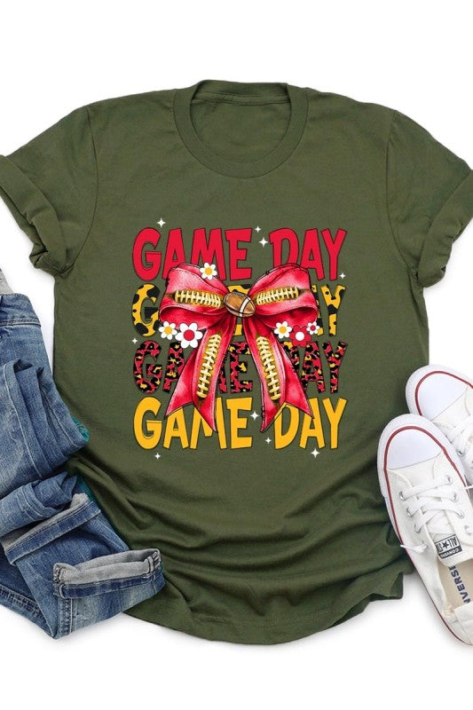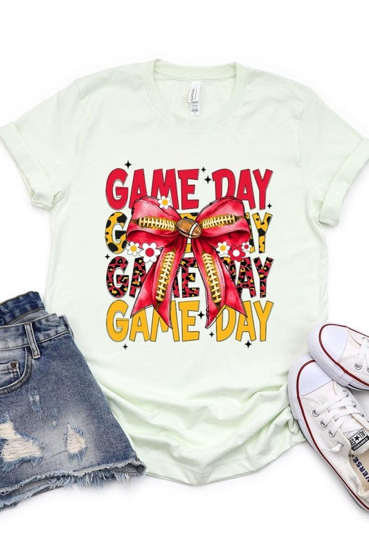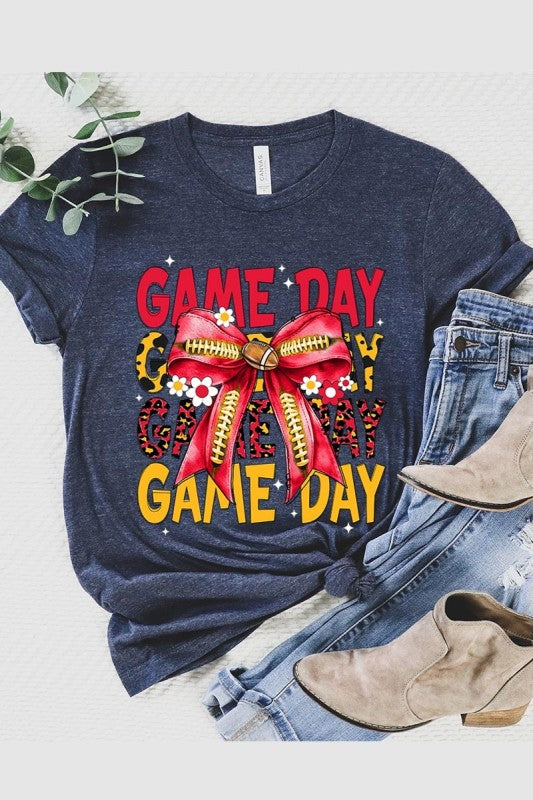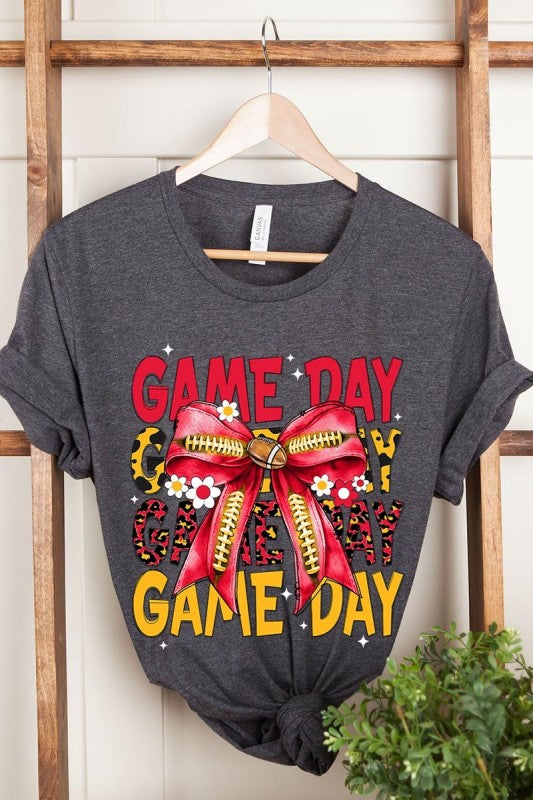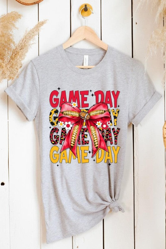 Red Yellow Football Game Day Bow Graphic Plus Tee