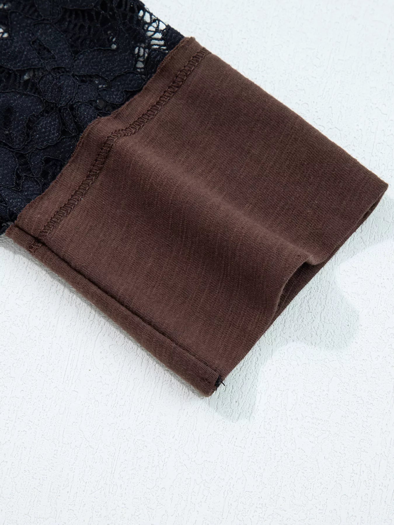 Sheer Lace Patchwork Casual Long Sleeve Top
