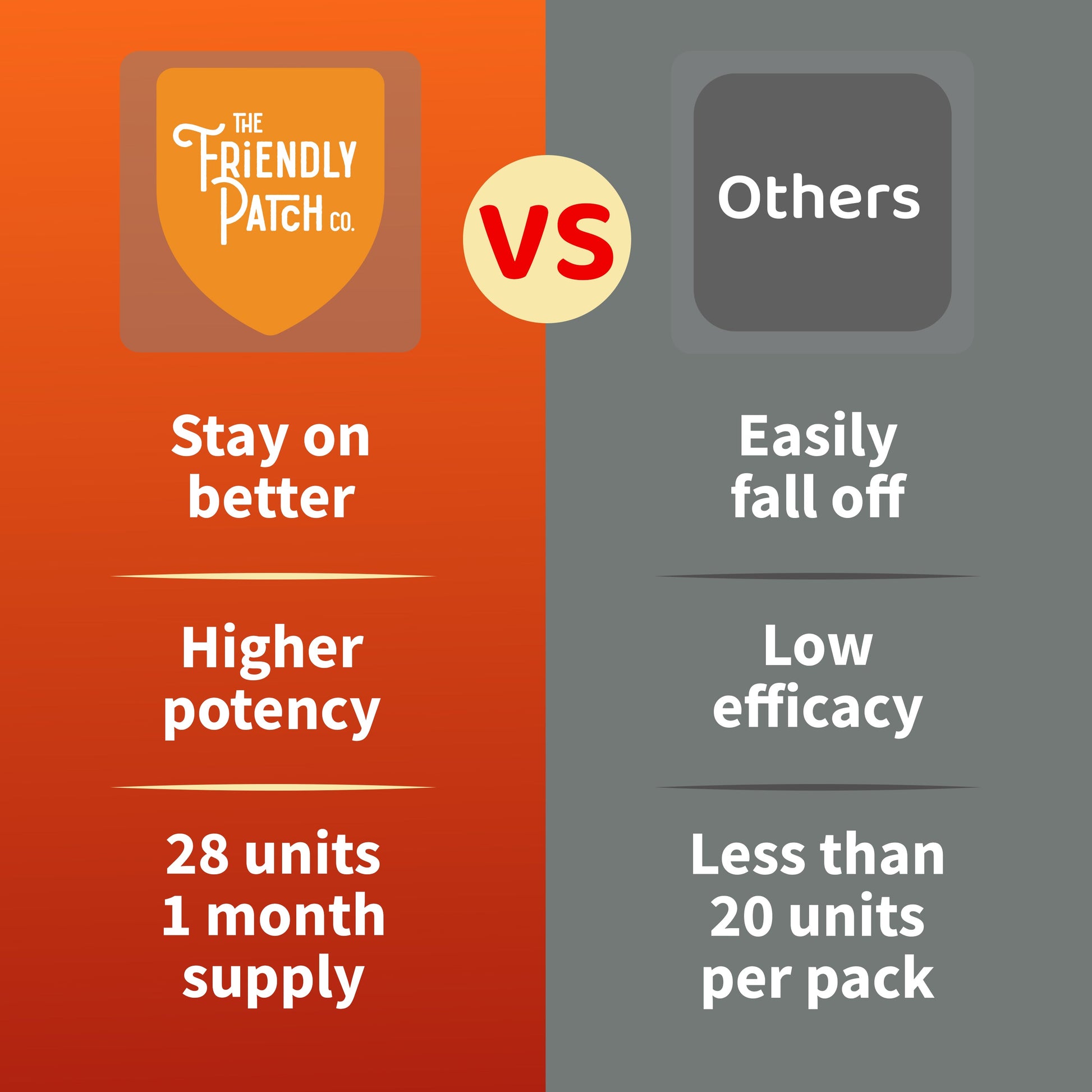 Note: Not all patches are created equal; again, The Friendly Patch products are WERCSmart Certified to ensure formulation ingredients and consumer safety compliance. This 3rd party program represents a safety commitment to our customers and our environment.