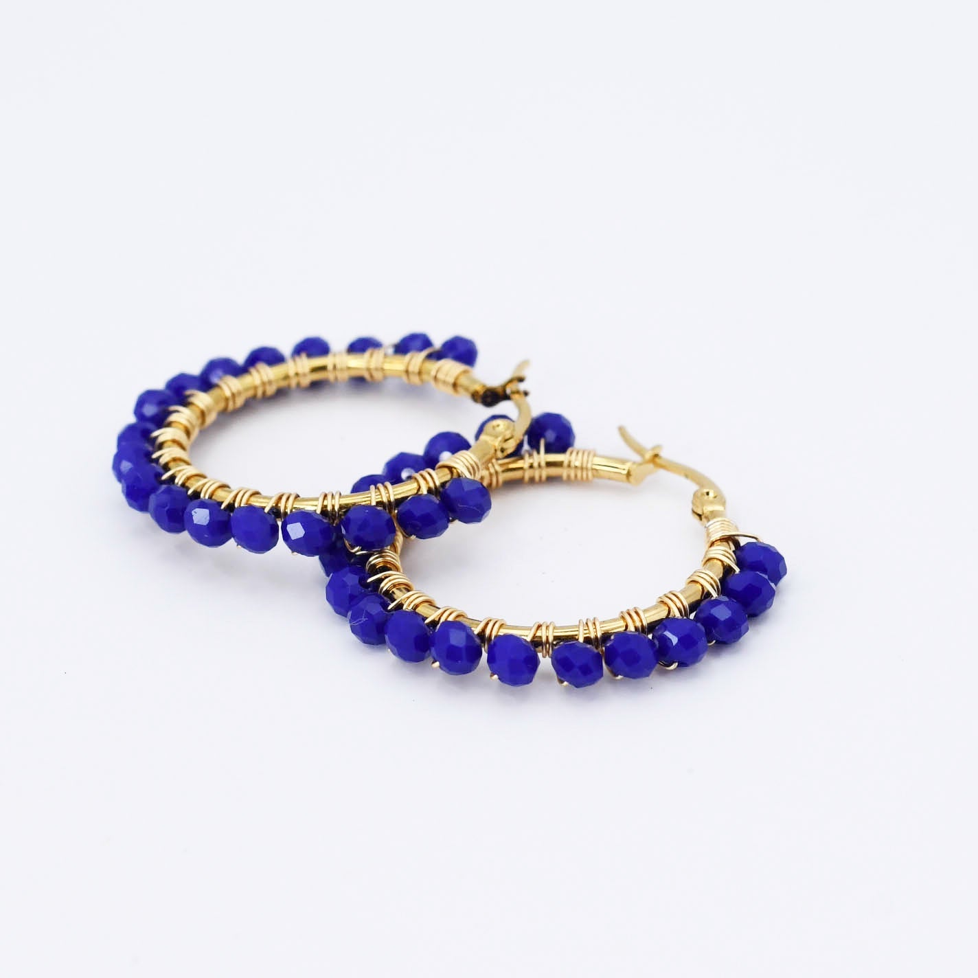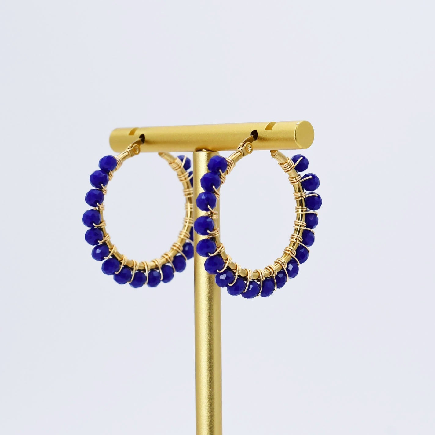 Small Blue Beaded Hoop D52
