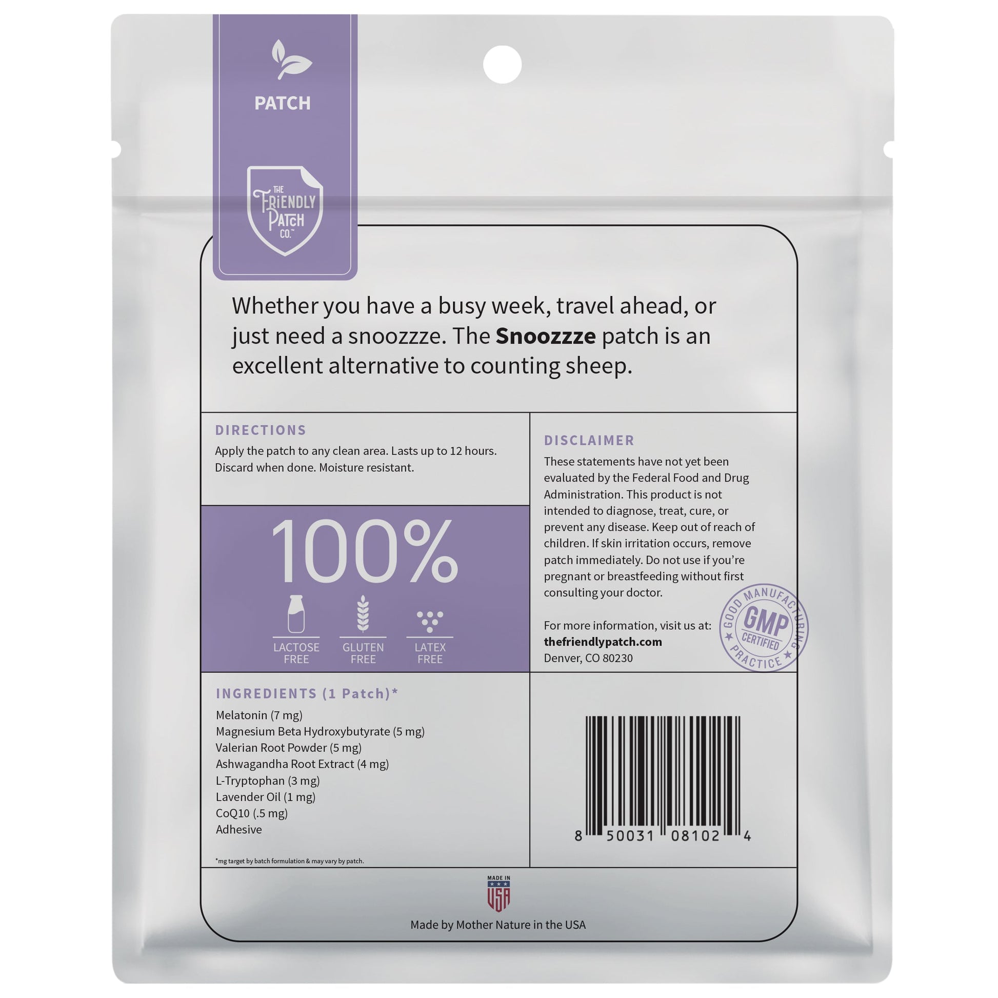 Melatonin is naturally produced and helps regulate the sleep-wake cycle. The snooze sleep aid patch is easy to use and comfortable to wear, and easy to take on and off.