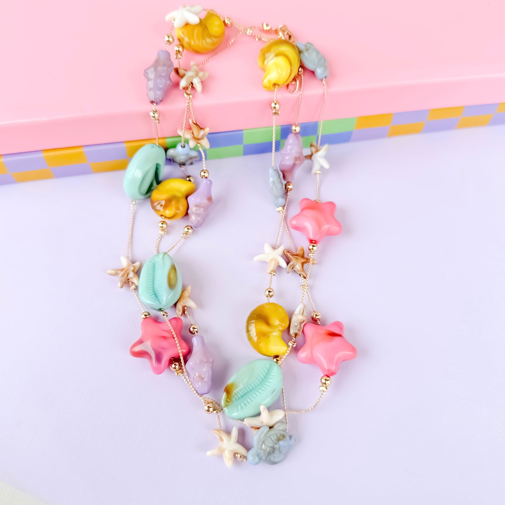Say hello to Starfish Kisses — the ultimate girlie, ocean-loving necklace that’s all about fun in the sun! Featuring playful pastel sea elements like starfish, shells, and waves, this long, lightweight beauty gives you options: wear it full length for laid-back beach vibes or double it up for a cute, layered look. Whether you’re chasing sunsets or brunch dates, Starfish Kisses brings a splash of magic everywhere you go.