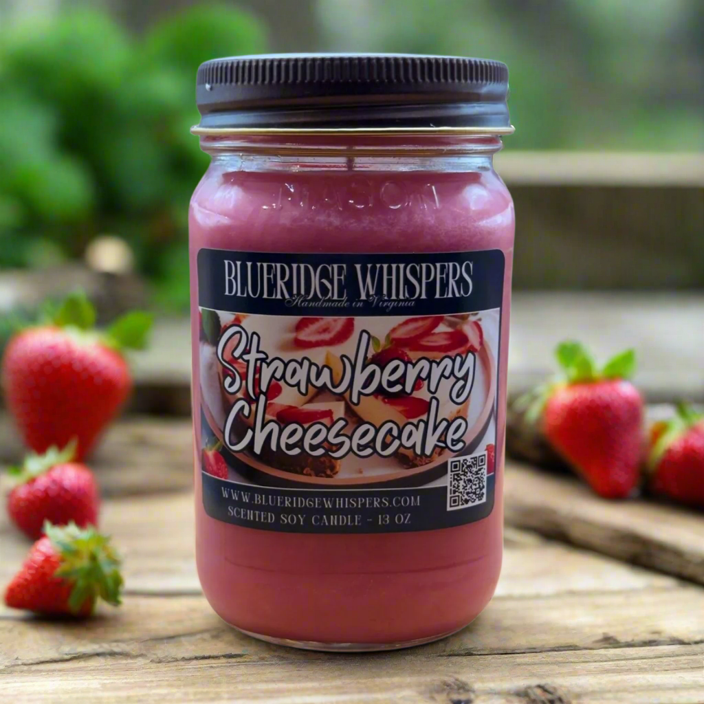 Strawberry Cheesecake – Dessert Soy Candle with Vanilla & Graham Crust | 16 oz Mason Jar