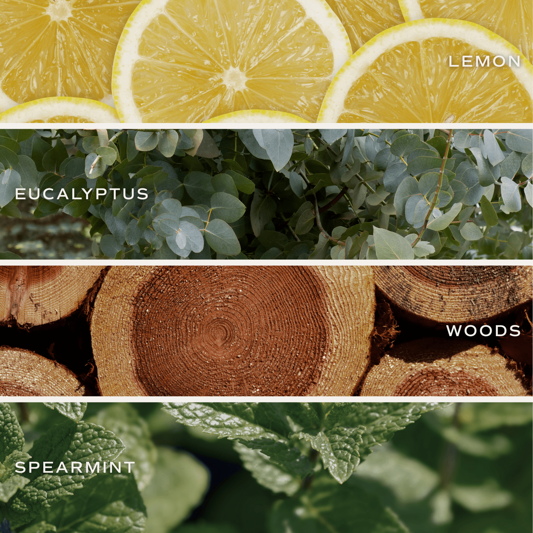 - Middle: Eucalyptus, Parsley, Lavender, Spearmint