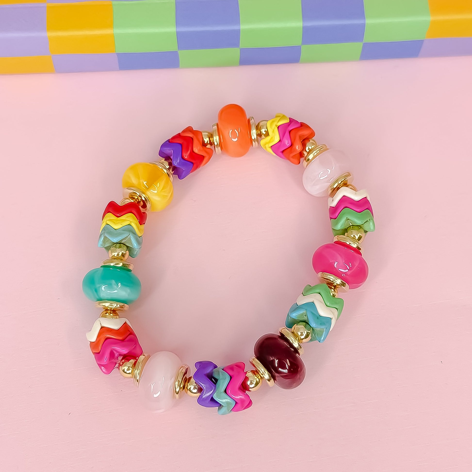 - A burst of playful energy wrapped around your wrist! With juicy donut beads, zigzag pops of color, and shiny touches, this stretch bracelet is the ultimate arm candy.