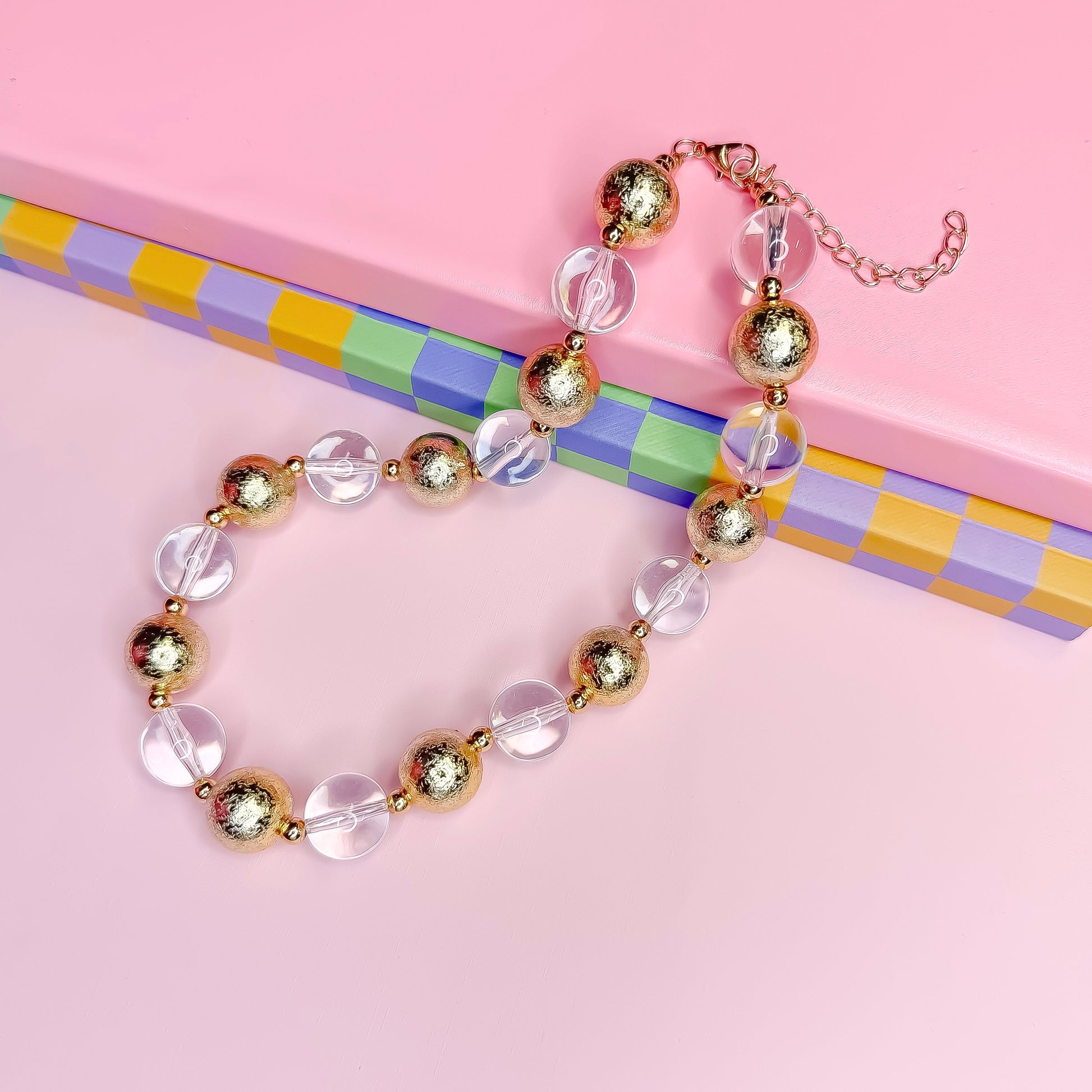 Cue the confetti — the Party Is Here Necklace brings the celebration wherever you go! Featuring dazzling gold-flecked beads and sleek clear accents, this bold beauty lights up every outfit with instant sparkle and fun. Whether you’re dressing up or keeping it casual, this necklace says it loud: the party has officially arrived.