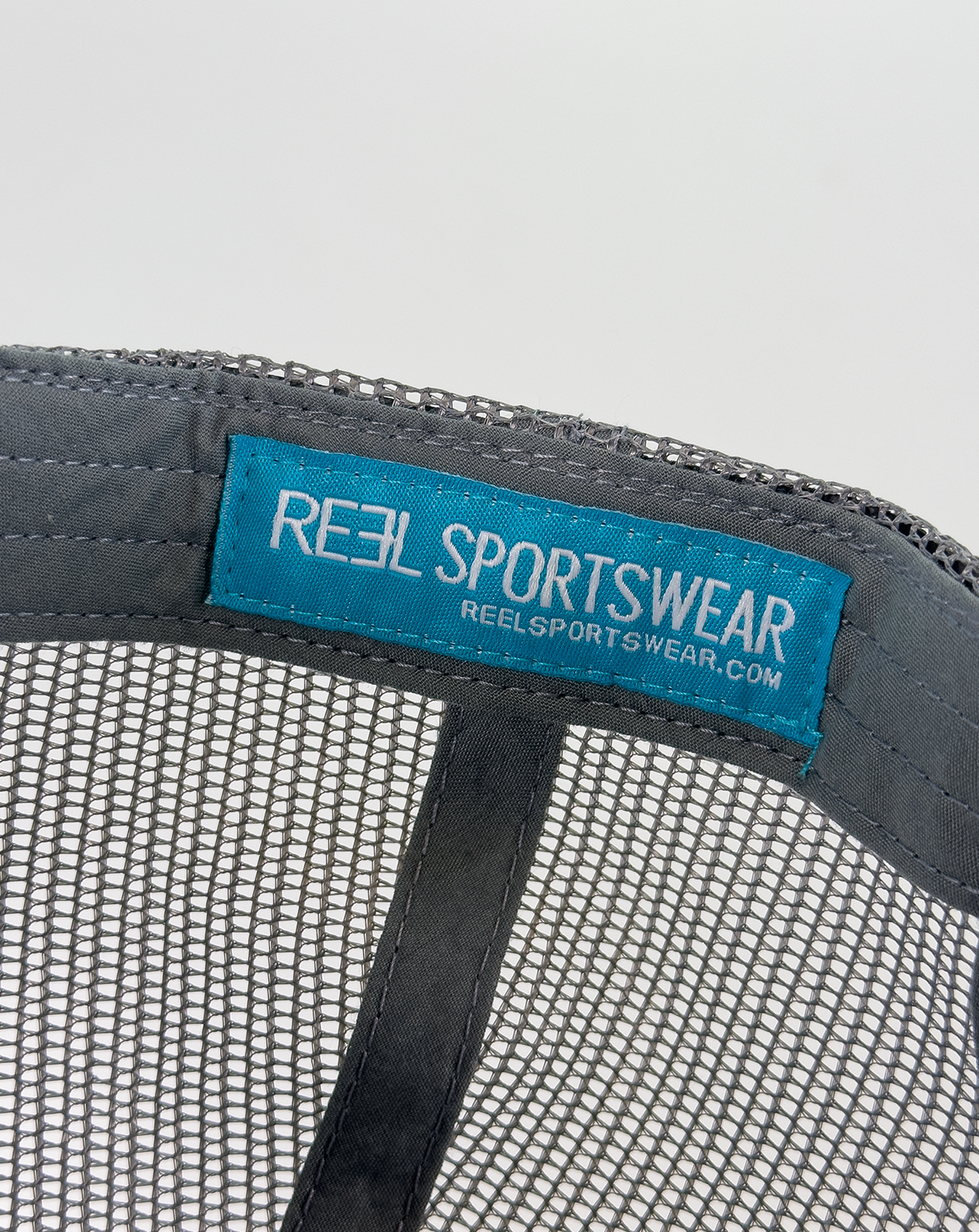 Front and center is a bold embroidered patch showcasing the iconic Reel Sportswear logo in a no-nonsense style. The braided rope across the bill is a subtle nod to classic fishing culture, reimagined with a fresh, contemporary twist. With breathable mesh back panels, a structured pro-model fit, and an adjustable snapback, the Stud Trucker is as functional as it is stylish.